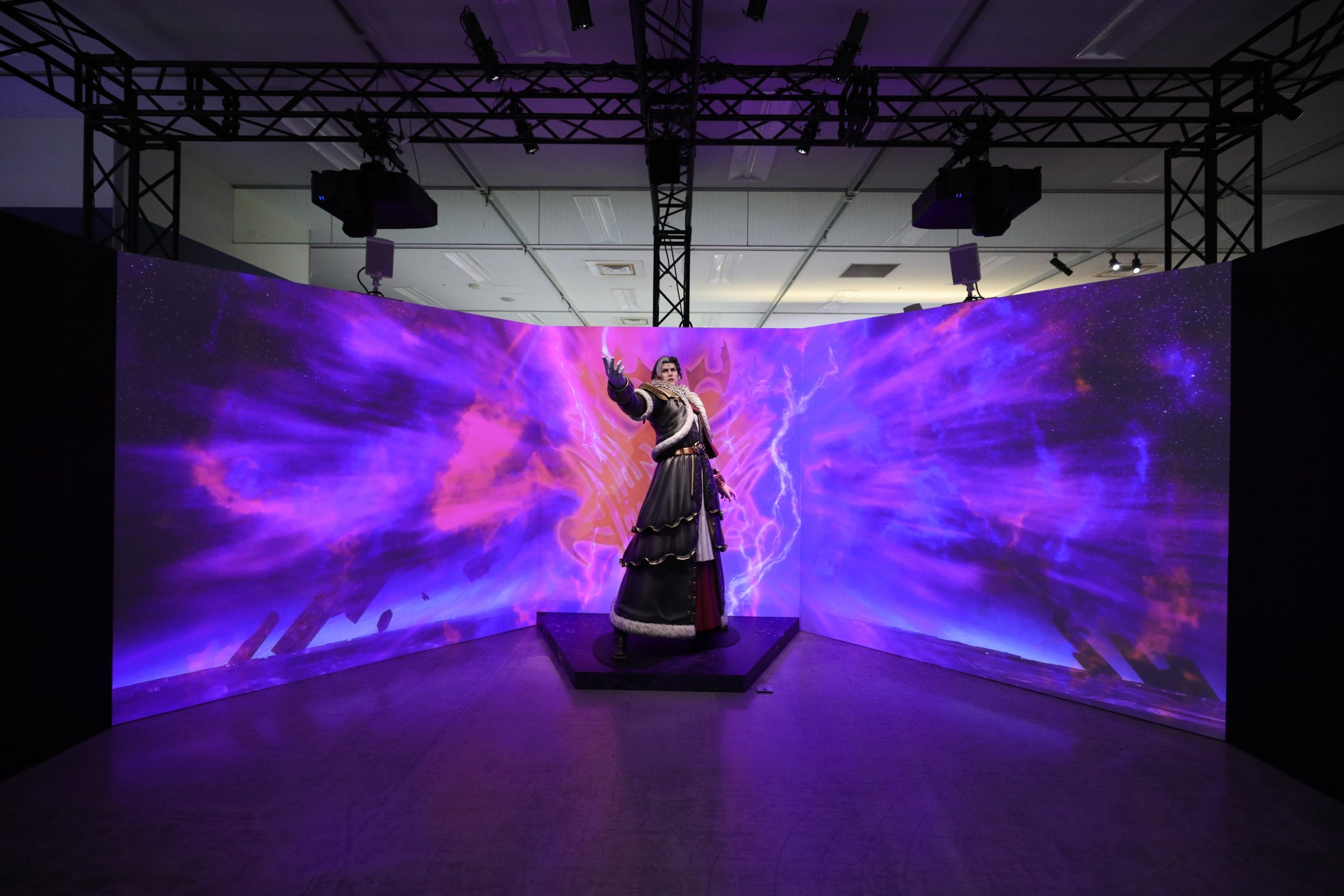 「漆黒のヴィランズ」エリアには等身大フィギュアの「エメトセルク」「水晶公」の姿も。(制作協力:株式会社デザインココ)