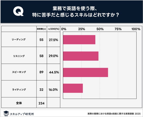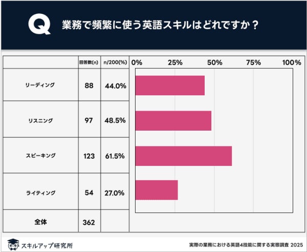 スキルアップ研究所、「実際の業務における英語4技能に関する実態調査」の結果を発表