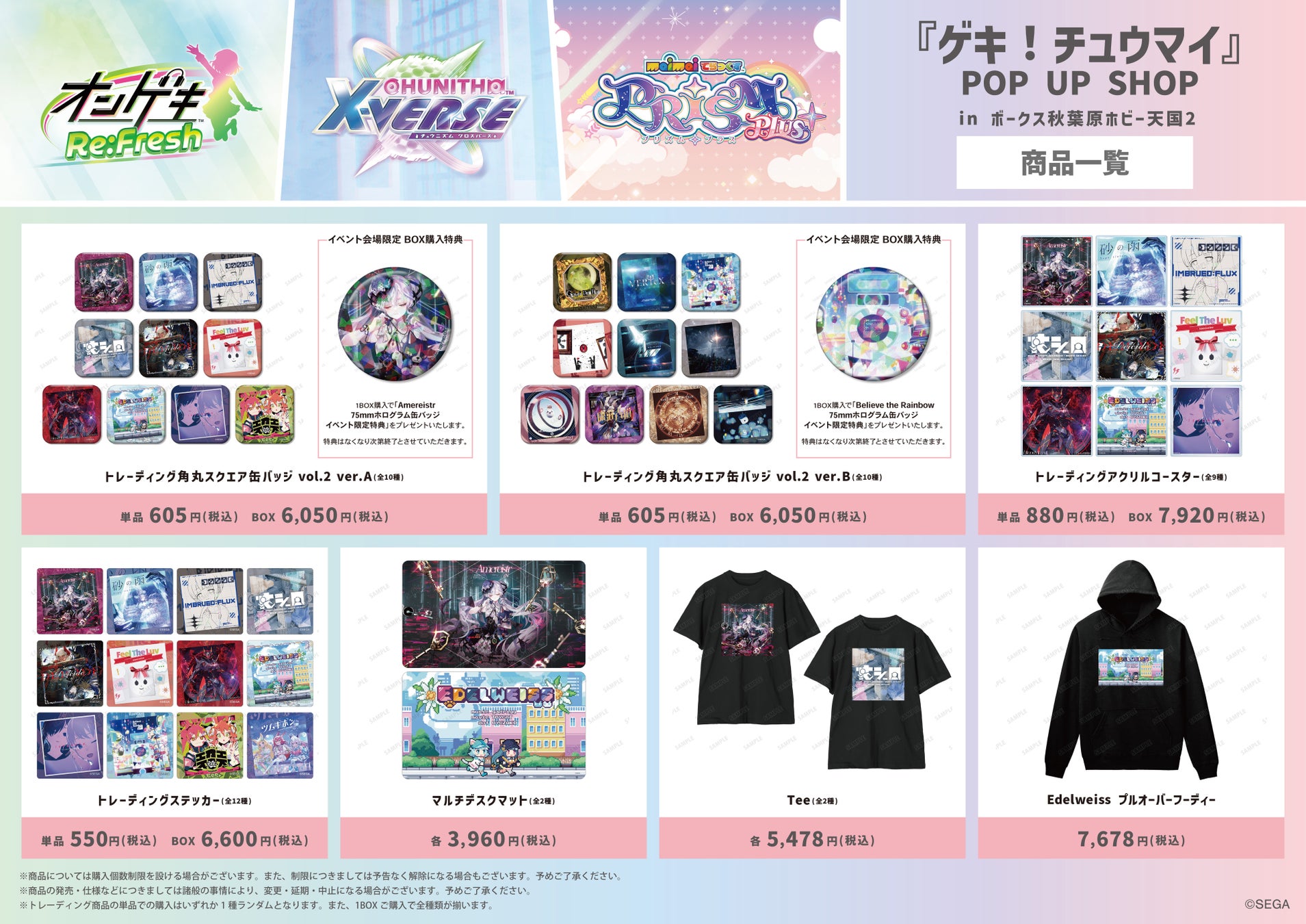 2025年12月6日(土)よりボークス 秋葉原ホビー天国2にて、「maimai でらっくす PRiSM PLUS」、「CHUNITHM X-VERSE」、「オンゲキ Re:Fresh」のイベント、『ゲキ!チュウマイ』 POP UP SHOP in ボークス秋葉原ホビー天国2の開催が決定いたしました。