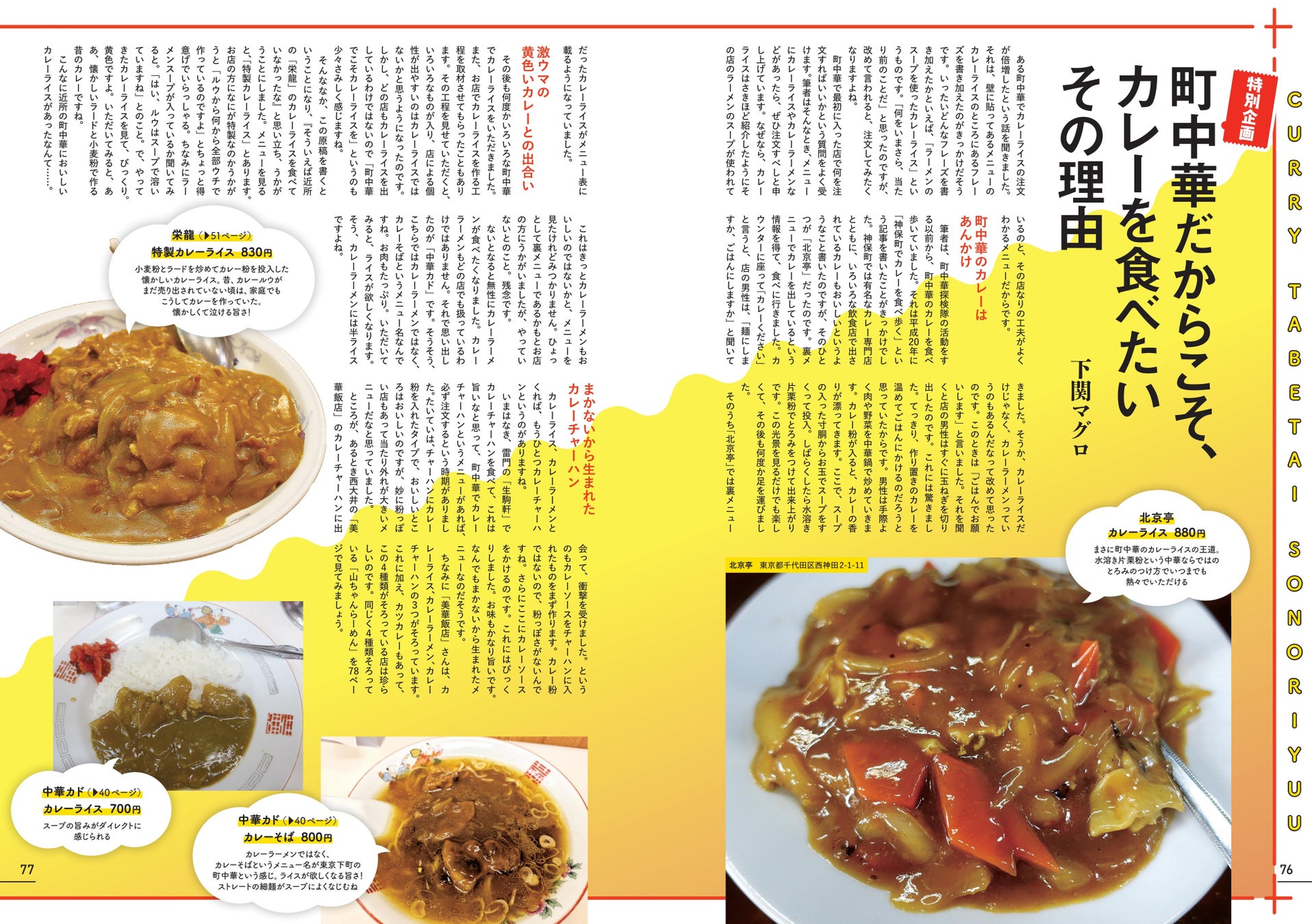 町中華探検隊メンバーによる、個性豊かなコラムも充実。天津丼やカレーといった、「町中華」ならではのメニューを掘り下げるほか、名店を語る座談会も掲載しています。