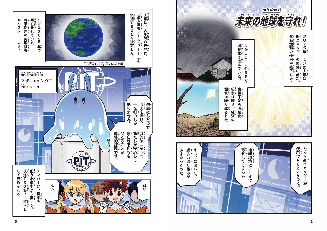 「ニュースのことば」を調査するのは、2075年からやってきた「PIT(過去調査チーム)」のメンバーたち。地球環境が悪化した未来の小学生たちが、2025年にタイムスリップ!「ニュースのことば」を通じて、日本や世界のさまざまな疑問や課題を調査していきます。そして、そこからよりよい未来を築くための行動につなげていくのです。