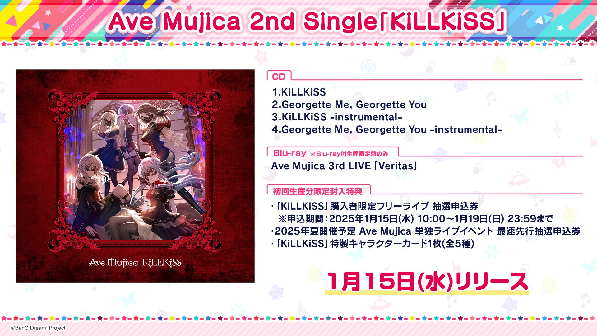 Ave Mujica 2nd Single「KiLLKiSS」が1月15日(水)にリリースされます。