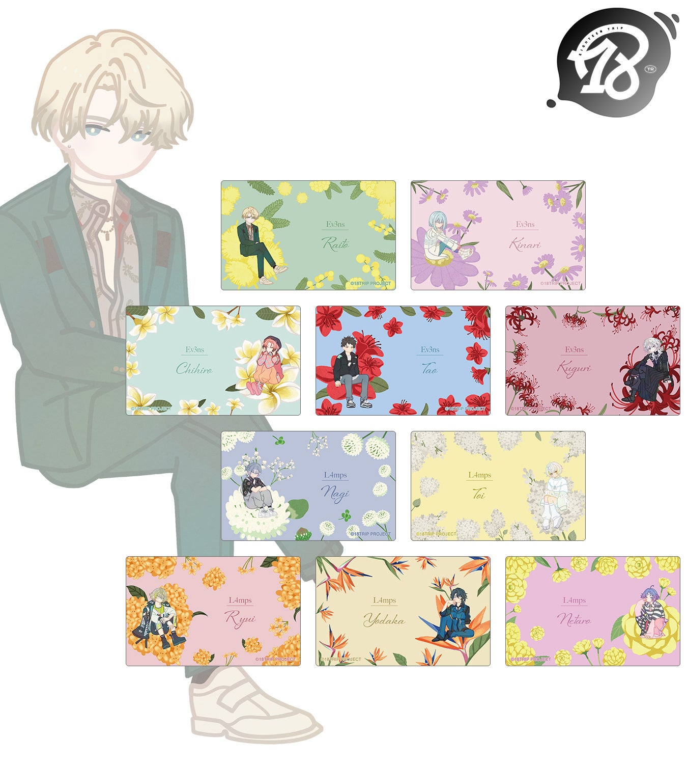 『18TRIP』のトレーディング Botania ゆらゆらアクリルスタンドなどの受注を開始!!アニメ・漫画のオリジナルグッズを販売する「AMNIBUS」にて