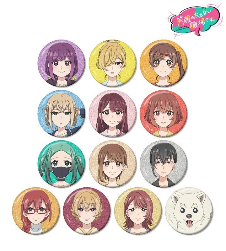 双見奈々、佐藤 楓、間 瑞希、梨田ありさ、角館塔子、浅倉 栞、ねこのて、間 柚希、滝沢 蓮、早池峰 和、天野香織、立浪和歌子、たからのイラストをグリッター加工を施した缶バッジに仕上げました。