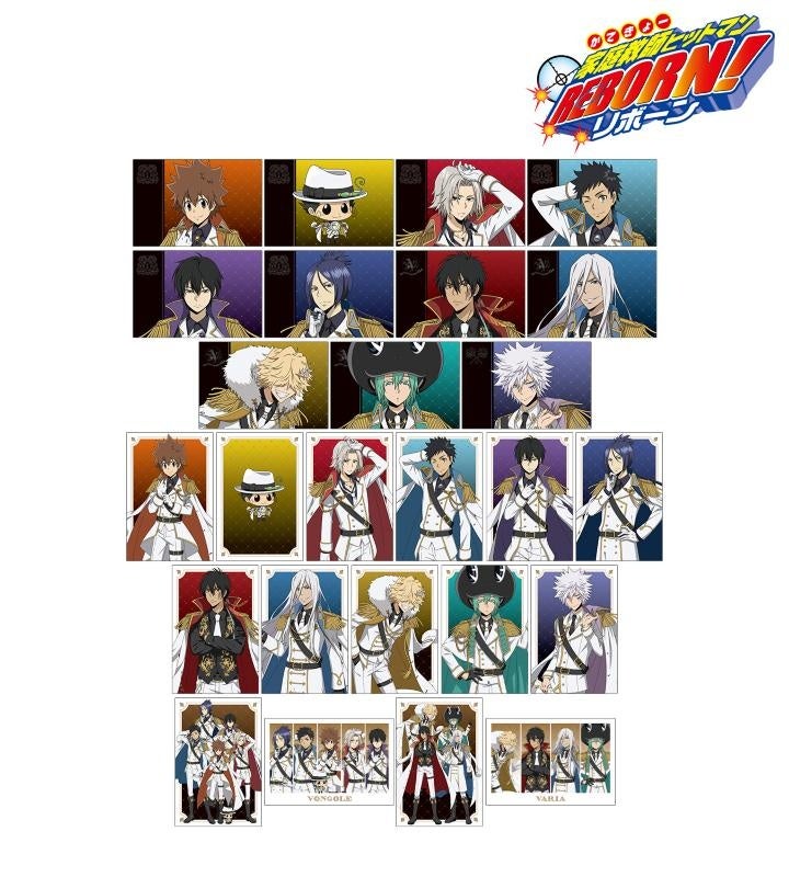 沢田 綱吉 、リボーン、獄寺 隼人(10年後)、山本 武(10年後)、雲雀 恭弥(10年後)、大人ランボ、笹川 了平(10年後)、六道 骸(10年後)、ディーノ(10年後)、XANXUS (10年後)、スペルビ・スクアーロ(10年後)、ベルフェゴール(10年後)、フランのイラストを新たなタッチで魅力的に表現し、イラストカードに仕上げました。