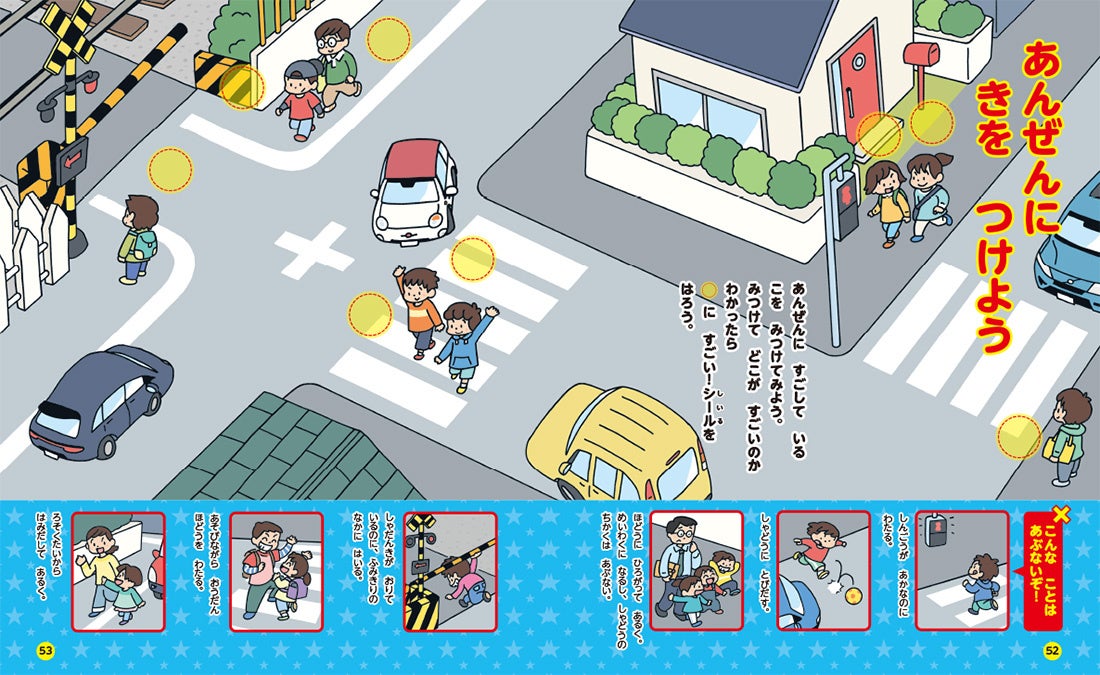 道路を歩くときのきまりや、のりものに乗るときのマナーを学べます。