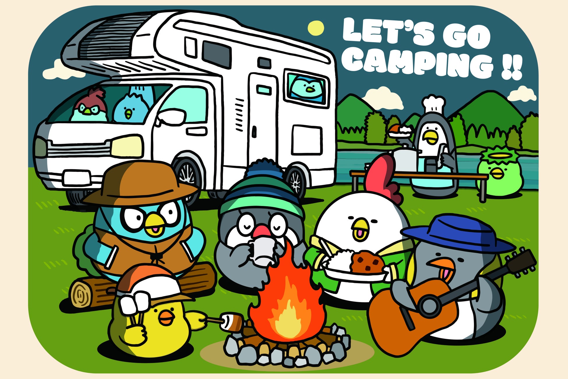 漫画家・橋本ナオキによるインスタグラムなどのSNSで人気の昼まで寝ていたいニワトリと意識高い系後輩ヒヨコや様々なキャラを持った鳥たちが会社員生活を送る様子を描く漫画「毎日でぶどり」。当イベントとのコラボ漫画「キャンピングカーでありがちなこと」のパネル展示、ジャパンキャンピングカーショーとのタイアップ特別描きおろしイラストの展示、グッズ販売を実施します!