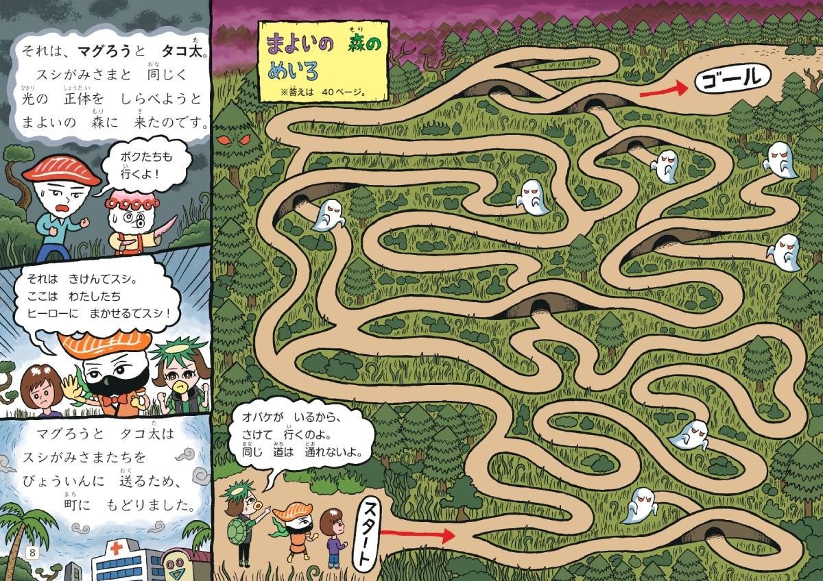 まんがやお話を読みながら、お寿司のネタや魚の秘密・マメ知識を楽しく学べます。