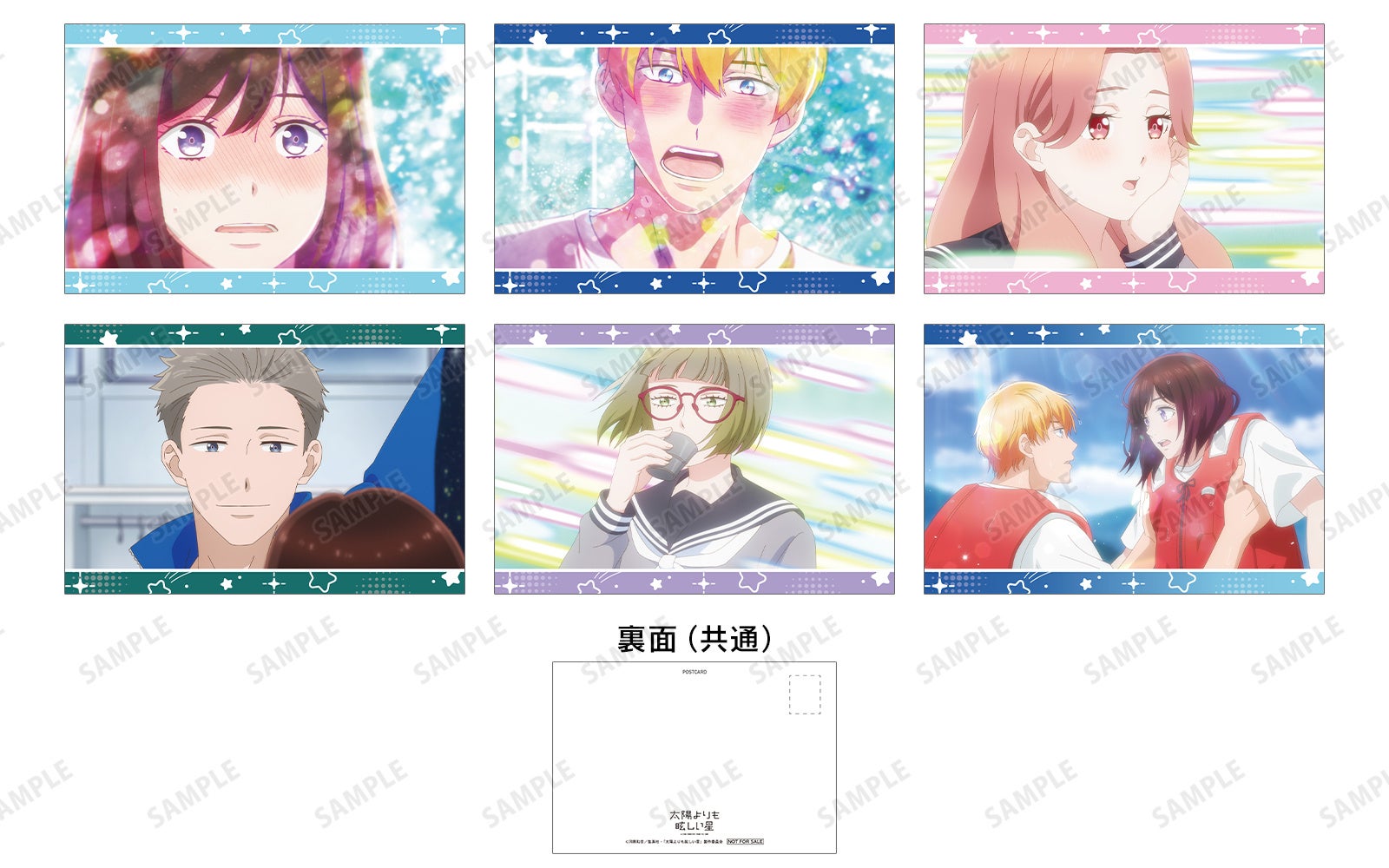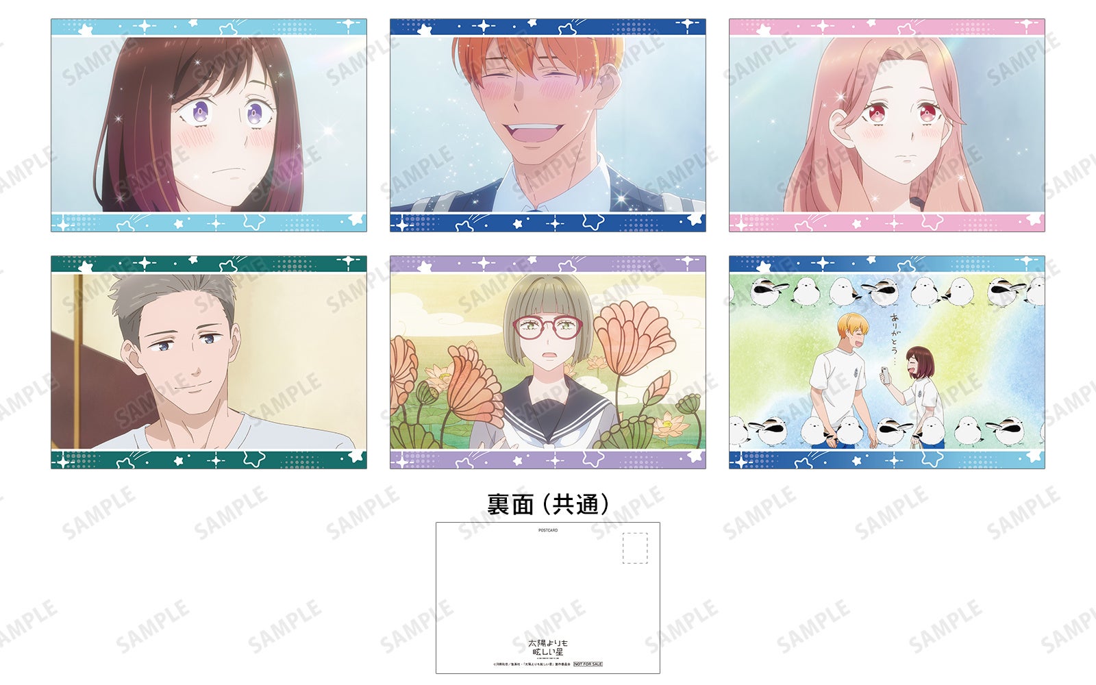 2025年12月4日(木)~2025年12月21日(日)の期間中、アニメイト通販にてTVアニメ『太陽よりも眩しい星』関連の対象キャラクターグッズをご予約1,100円(税込)毎に、通販事前予約キャンペーン特典「ポストカード(全6種)」を1枚プレゼント!