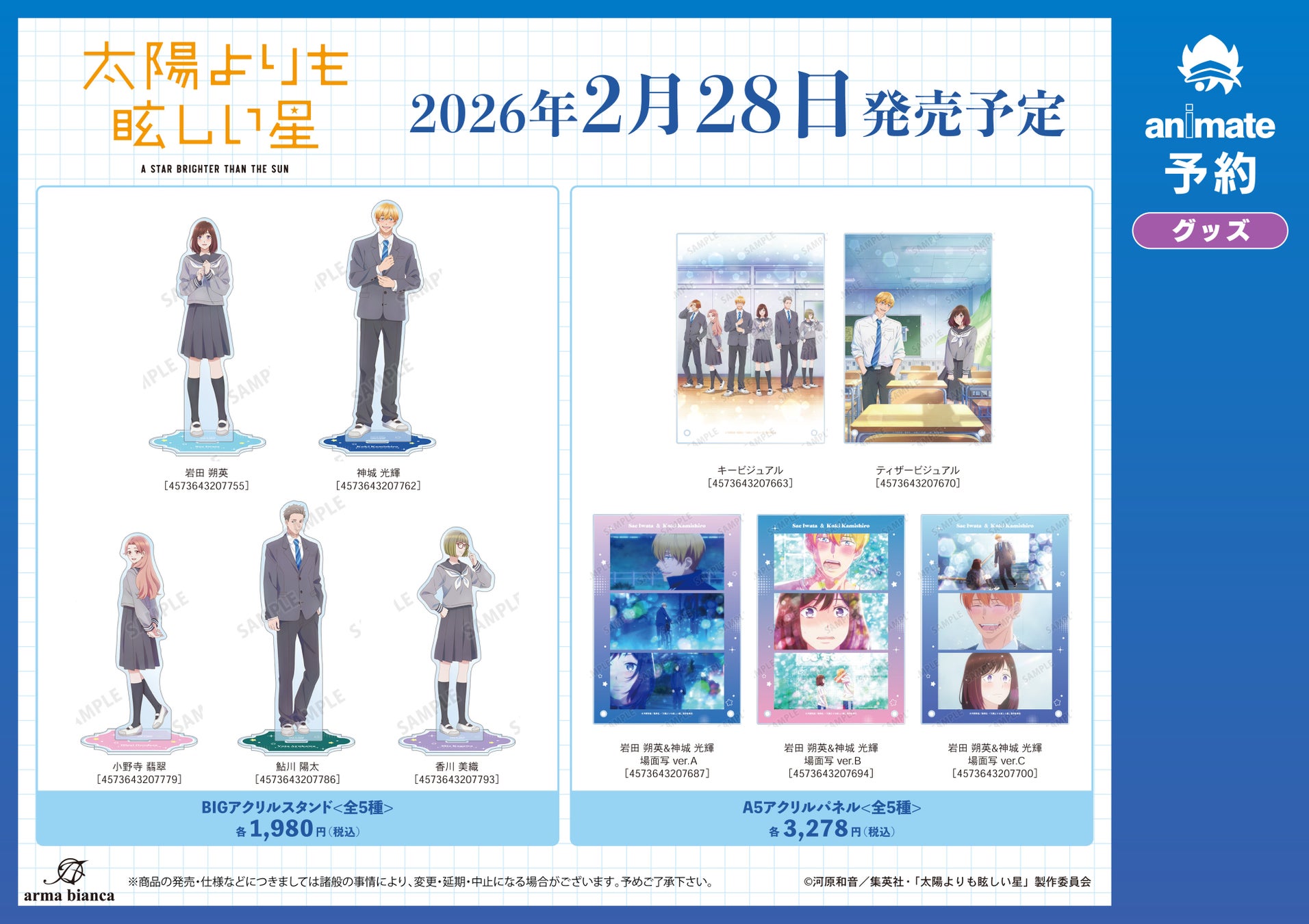 漫画・アニメのオリジナルグッズを販売する株式会社アルマビアンカは「TVアニメ『太陽よりも眩しい星』アニメイトフェア」を実施いたします!
