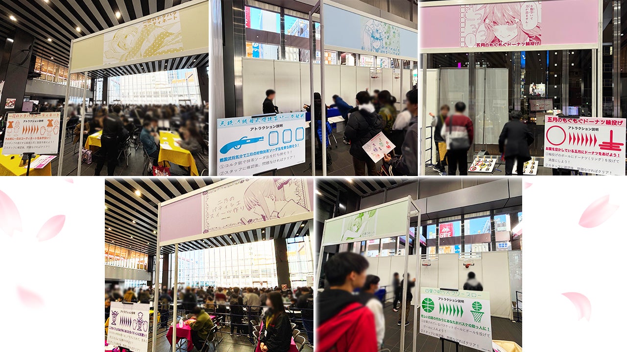 五つ子たちをモチーフにした5種類のミニアトラクションを実施し、待機列には多くの方にお並びいただきました。