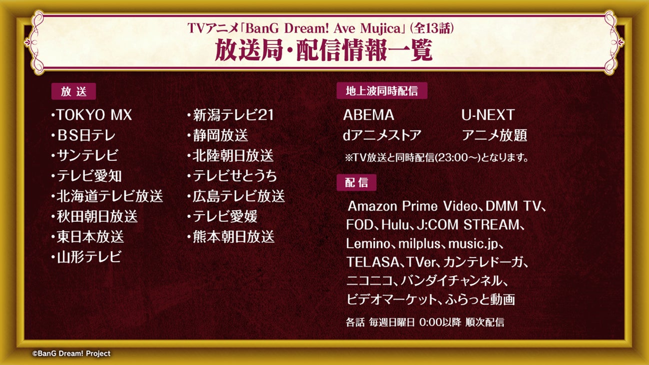 ■TVアニメ「BanG Dream! Ave Mujica」放送・配信情報