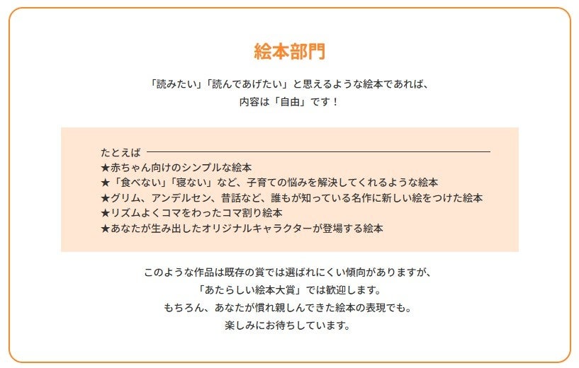 絵本部門:絵や文章を書くのが好きな人、物語を伝えたい人へ
