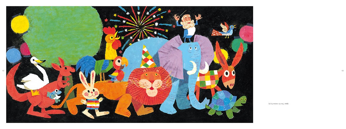 戦後まもなく、月刊絵本の世界で活躍を始めた柿本幸造。初期の絵には、柿本幸造らしい動物と子どもたちのほか、迫力ある電車や車、低い目線の独特の構図、なつかしい風景、俯瞰図、ビビッドな色彩の絵などがあり、多彩な魅力を見せてくれます。