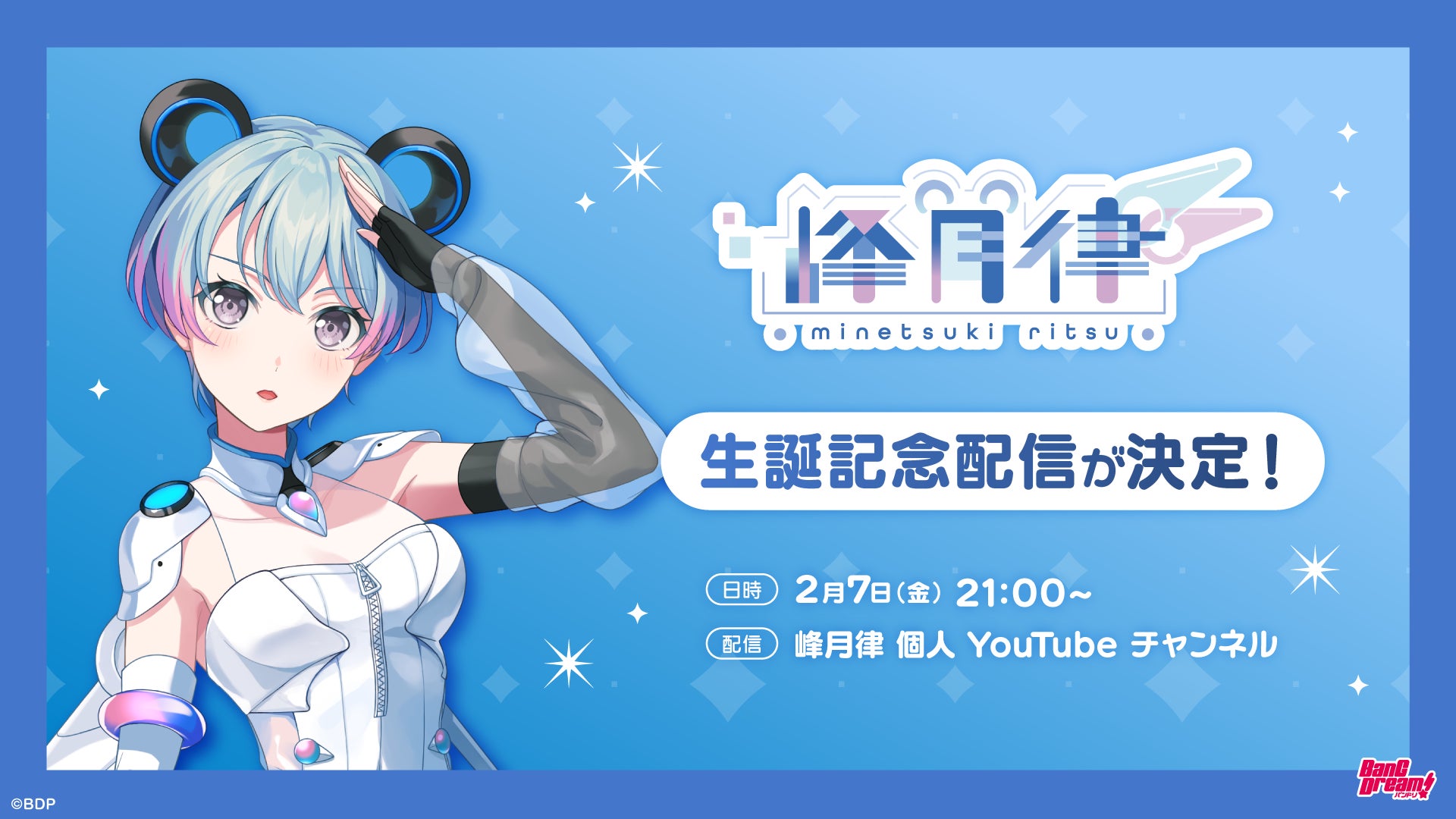 2月7日(金)に夢限大みゅーたいぷGt. 峰月律の生誕記念配信の実施が決定しました。