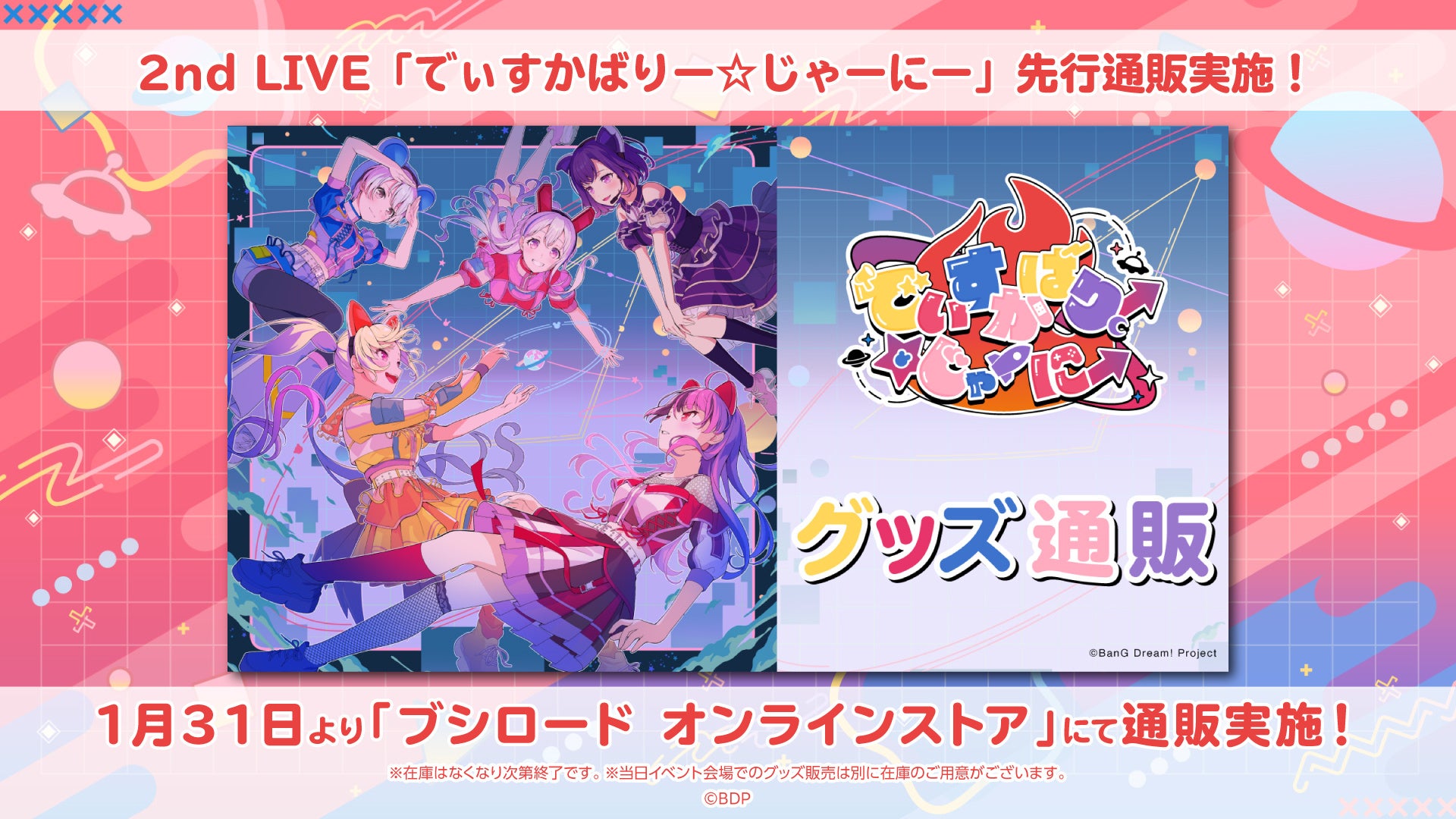 2月16日(日)に開催予定の夢限大みゅーたいぷ 2nd LIVE「でぃすかばりー☆じゃーにー」のグッズの先行通販が「ブシロード オンラインストア」にて開始されました。