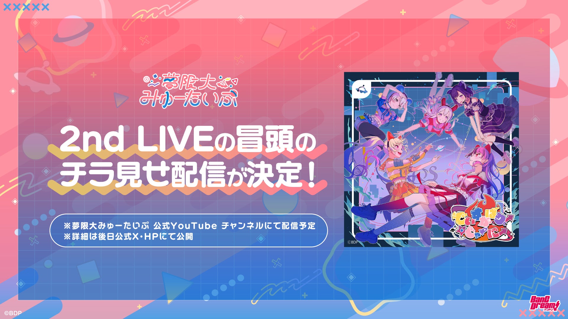 夢限大みゅーたいぷ2nd LIVE「でぃすかばりー☆じゃーにー」のチラ見せ配信が決定しました。