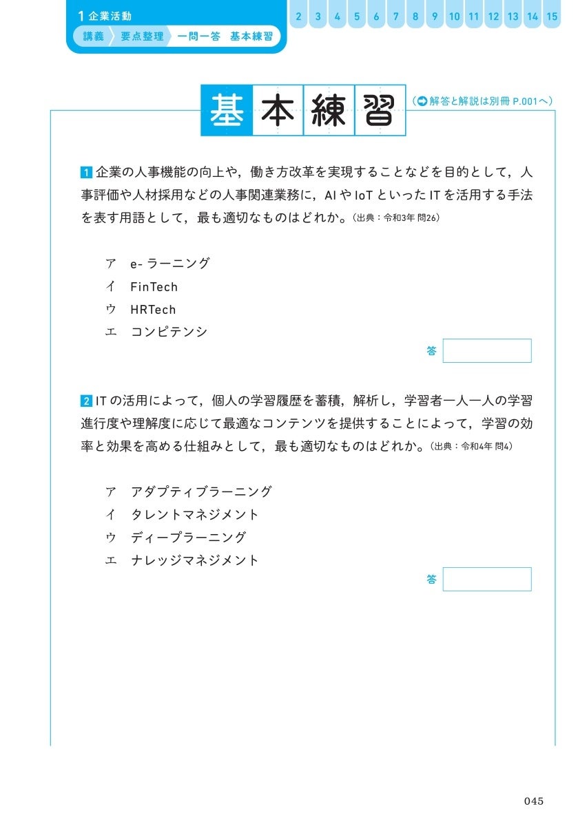 ▼講義の内容が身についているかどうか、一問一答形式でチェックできます。最後は「基本練習」で、内容の理解度を問題形式で確認しましょう。