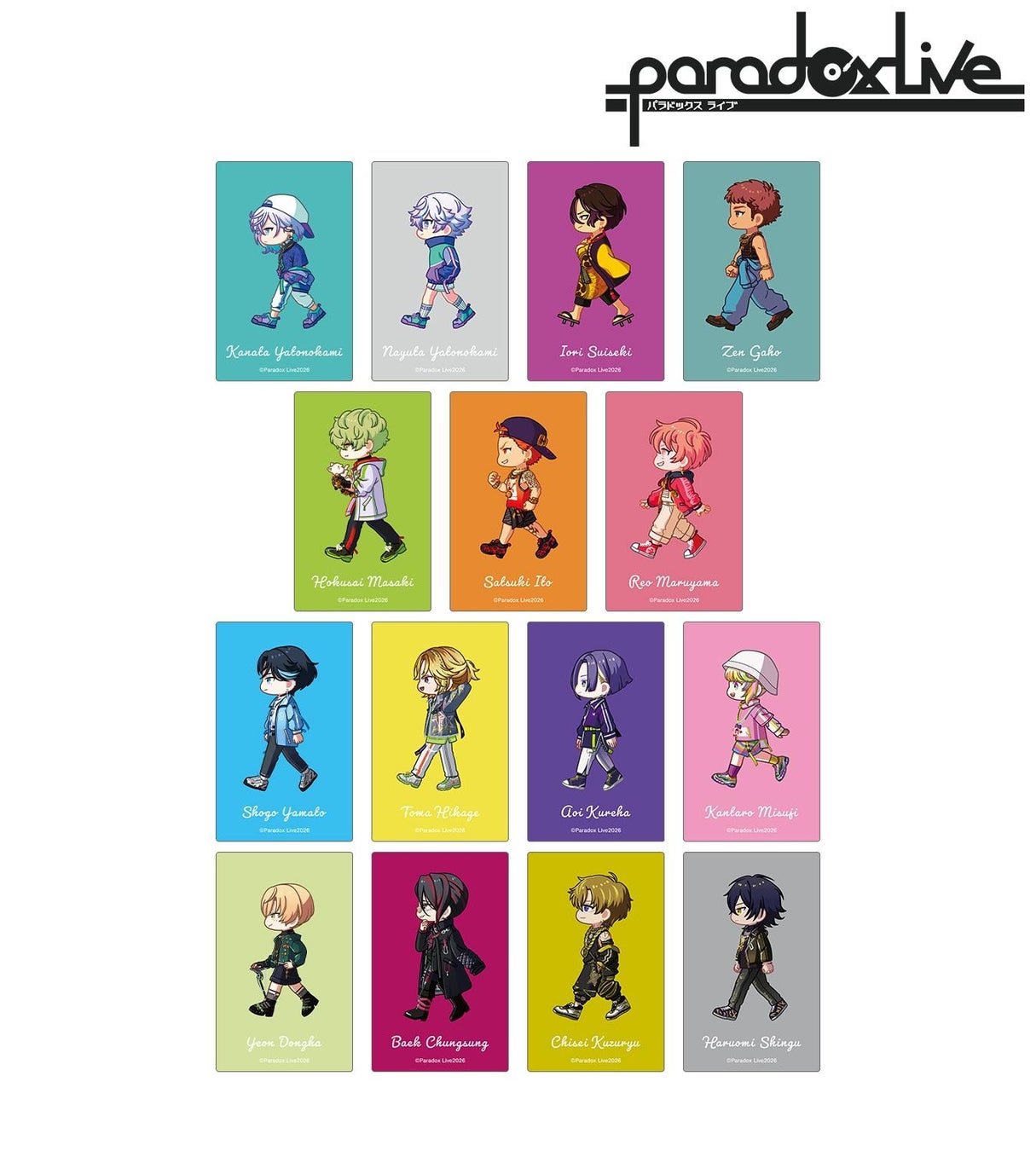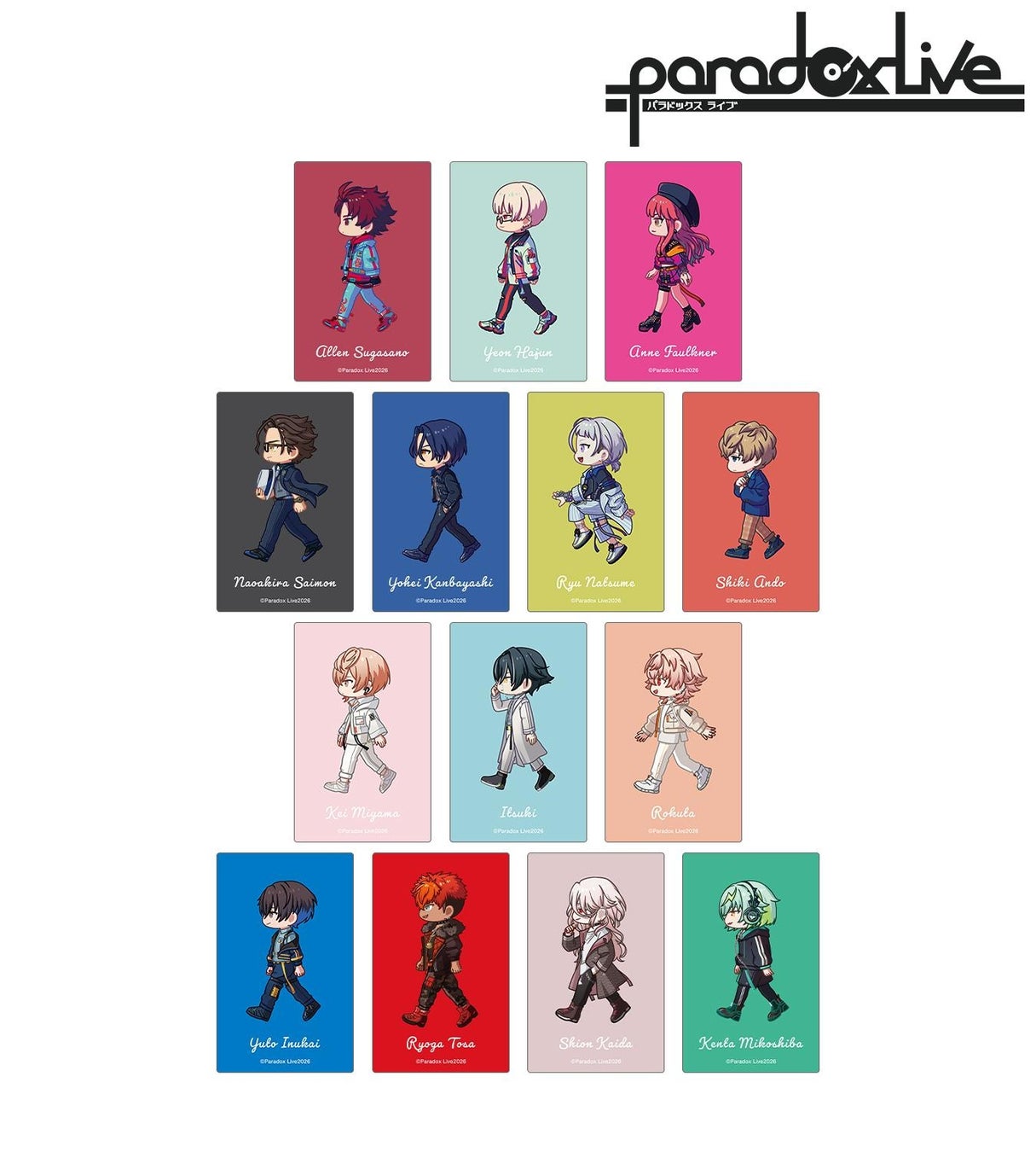 朱雀野 アレン、燕 夏準、アン・フォークナー、西門 直明、神林 匋平、棗 リュウ、闇堂 四季、御山 京、イツキ、ロクタ、犬飼 憂人、土佐 凌牙、甲斐田 紫音、御子柴 賢太の歩く姿を新たにちびキャラに描き起こし、カードステッカーに仕上げました。