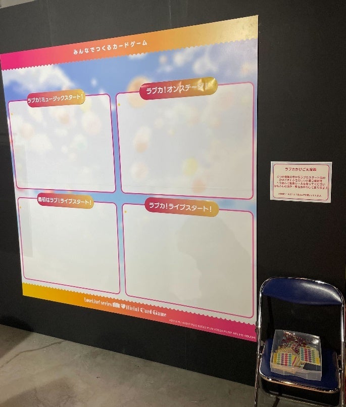 会場では商品の先行販売のほか、ラブカカードの実物展示、ラブカのキービジュアルやブースターパック vol.1のパッケージイラストを使用した大型パネル、ラブカ描き下ろしのスクールアイドル 57人のスタンディ展示も実施いたしました!