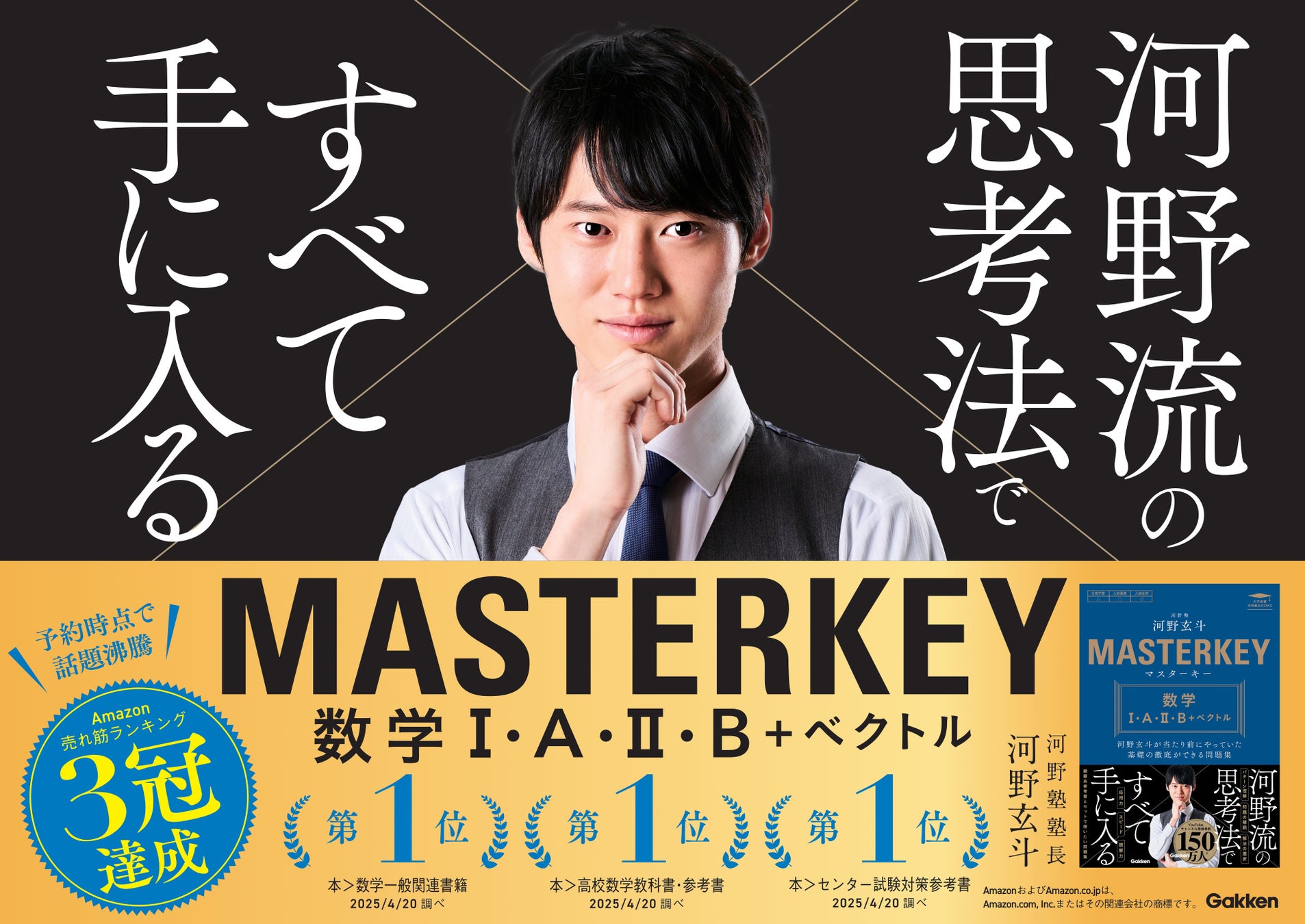 株式会社 学研ホールディングス(東京・品川/代表取締役社長:宮原博昭)のグループ会社、株式会社 Gakken(東京・品川/代表取締役社長:南條達也、以下Gakken)は、2025年11月4日に『大学受験 河野塾ブックス マスターキー 数学I・A・II・B+ベクトル』(著:河野玄斗/2025年10月9日発売)の増刷を決定いたしました。