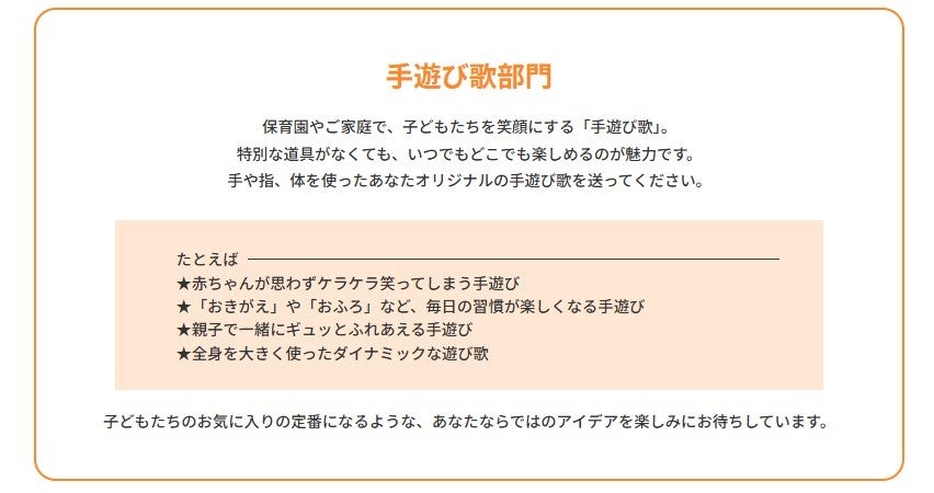 どのような作品が手遊び歌部門に寄せられるのか、とても楽しみです。」