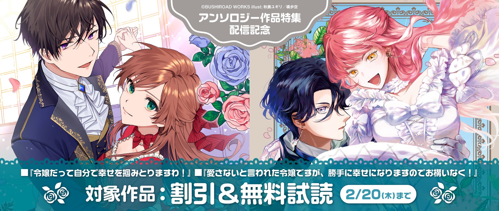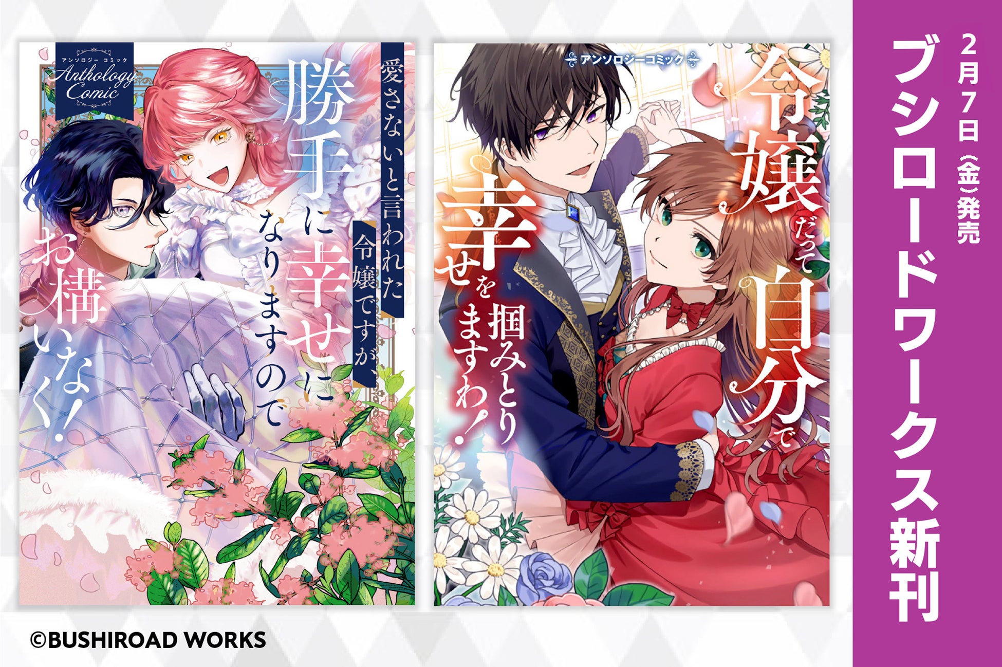 株式会社ブシロード(本社:東京都中野区、代表取締役社⻑:木谷高明)のグループ会社にあたる株式会社ブシロードワークス(本社:東京都中野区、代表取締役社長:新福恭平)は、「小説家になろう」より読切作品をコミカライズした令嬢たちのアンソロジー2冊が本日2月7日(金)より発売することをご案内致します。また、発売を記念した電子書籍フェアも実施中です。