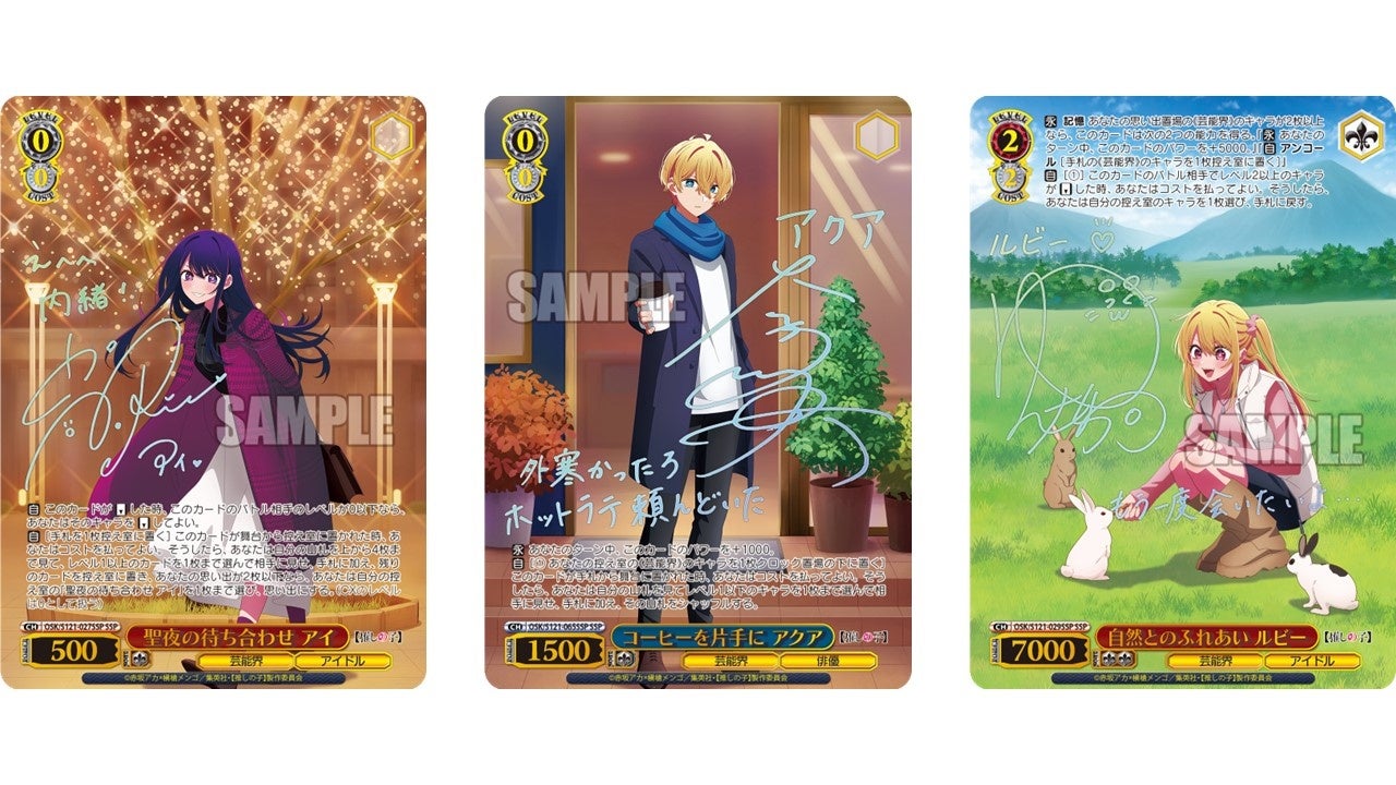 TVアニメ「【推しの子】」が再びヴァイスシュヴァルツに登場!新規描き下ろしイラスト6点や、出演キャストの箔押しサインカードを収録予定!さらに、初版限定でAGR(オートグラフレア)が極々稀に封入!