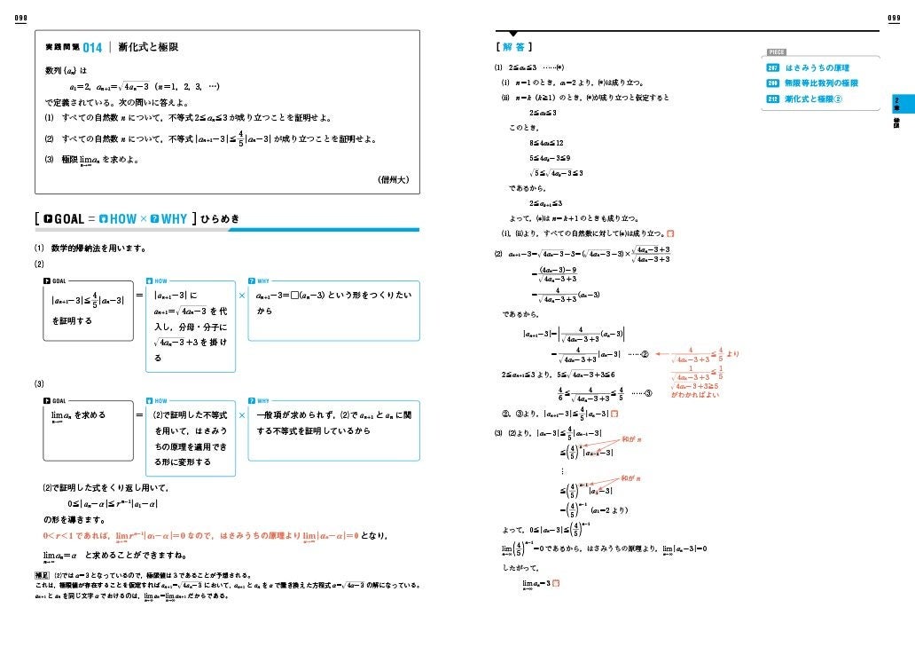 また、教科書レベルの基礎知識を補完する「PIECE」も充実。難易度の高い「数III・C」の内容も、スモールステップで無理なく積み上げられる構成になっています。