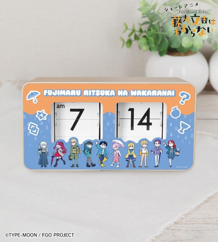 槌田先生描き下ろしイラストの藤丸立香、マシュ・キリエライト、アルトリア・ペンドラゴン、ガウェイン、ランスロット、トリスタン、モルガン、バーヴァン・シー、テスカトリポカ、トラロックをデザインしたパタパタ時計です。