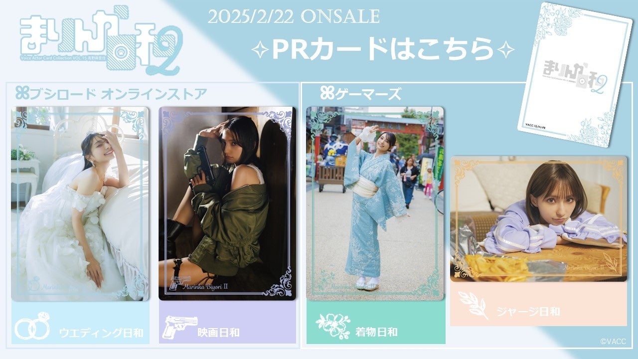 株式会社ブシロード(本社:東京都中野区、代表取締役社⻑:木谷高明、以下ブシロード)のグループ会社にあたる株式会社ブシロードクリエイティブ(本社:東京都中野区、代表取締役社長:成田耕祐)は、Voice Actor Card Collection(以下:ボイコレ)VOL.15高野麻里佳『まりんか日和2』が本日2月22日(土)に発売したことをご案内いたします。
