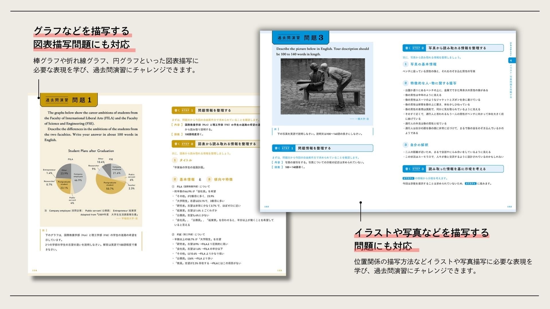 グラフや抽象的なイラスト、写真などの描写が求められる問題についても本書で取り扱っています。