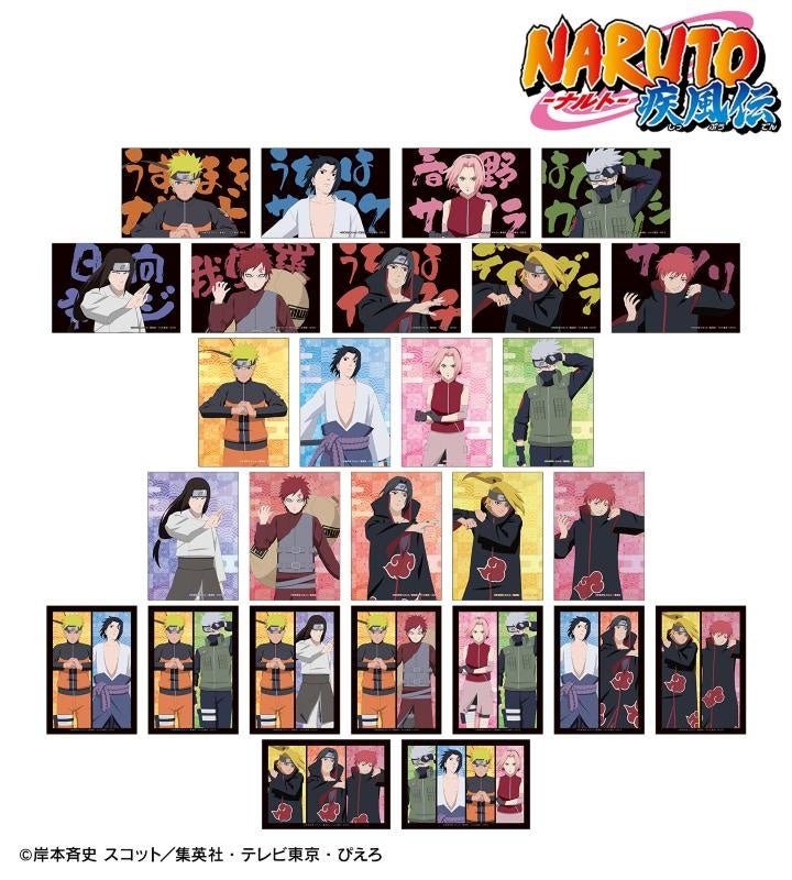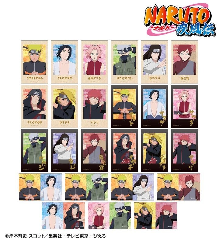 うずまきナルト、うちはサスケ、春野サクラ、はたけカカシ、日向ネジ、我愛羅、うちはイタチ、デイダラ、サソリの描き下ろしイラストをメインにデザインしました。