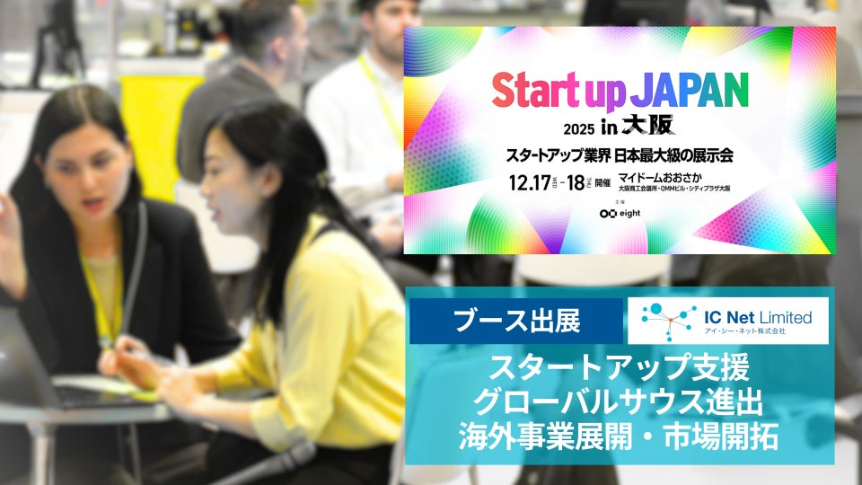 株式会社 学研ホールディングス(東京・品川/代表取締役社長:宮原博昭)のグループ会社、アイ・シー・ネット株式会社(埼玉・さいたま/代表取締役:百田顕児、以下アイ・シー・ネット)は、2025年12月17日(水)・18日(木)にマイドームおおさかで開催されるスタートアップ業界最大級の展示会「Startup JAPAN EXPO 2025 in 大阪」(主催:Eight)に初めてブース出展いたします。