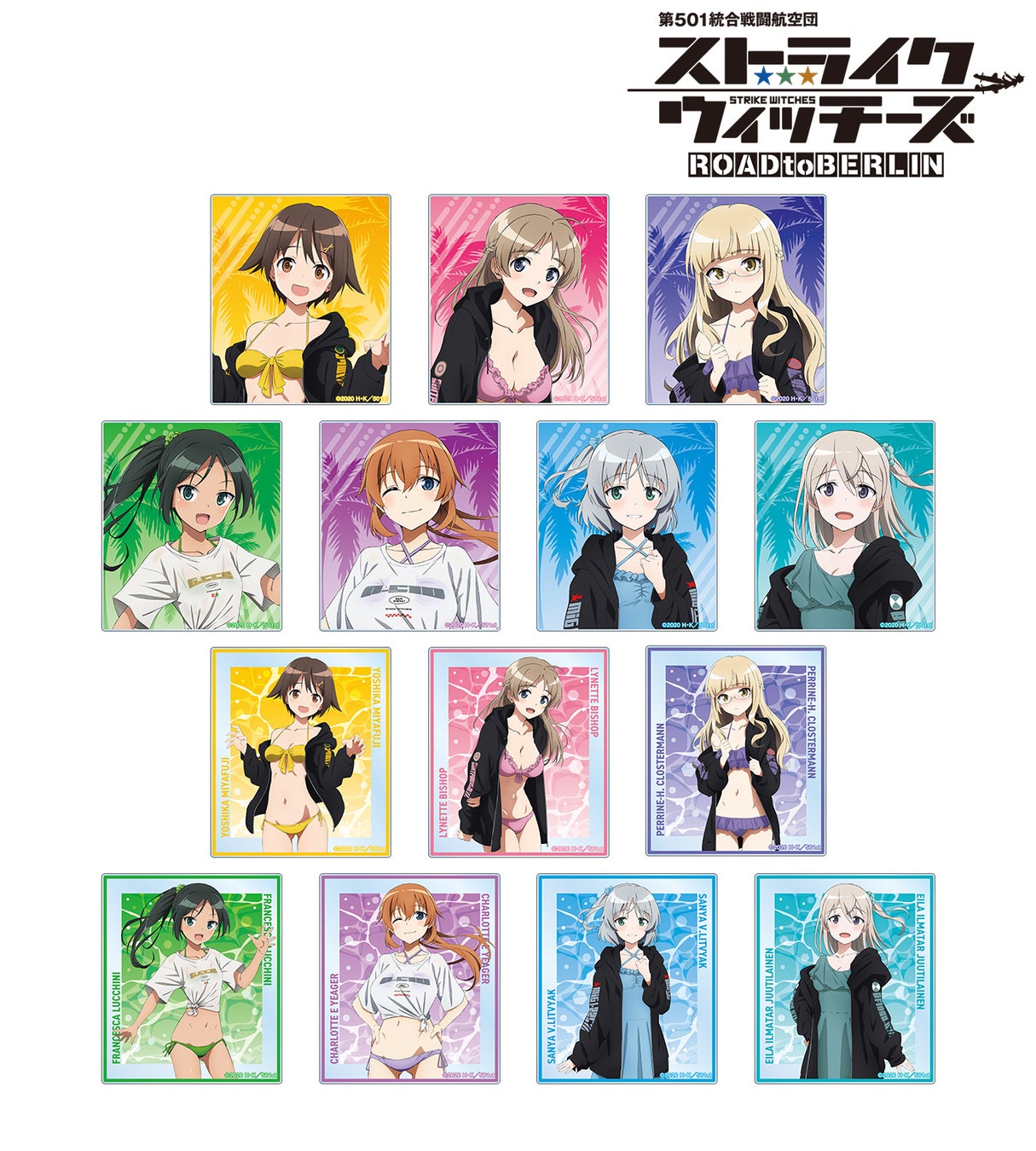 本商品は『第501統合戦闘航空団 ストライクウィッチーズ ROAD to BERLIN』より「水着」コンセプトの新規描き下ろしイラストを使用したオリジナルアパレル、雑貨となっております。アニメイト限定販売となっておりますので、お買い逃しなく!