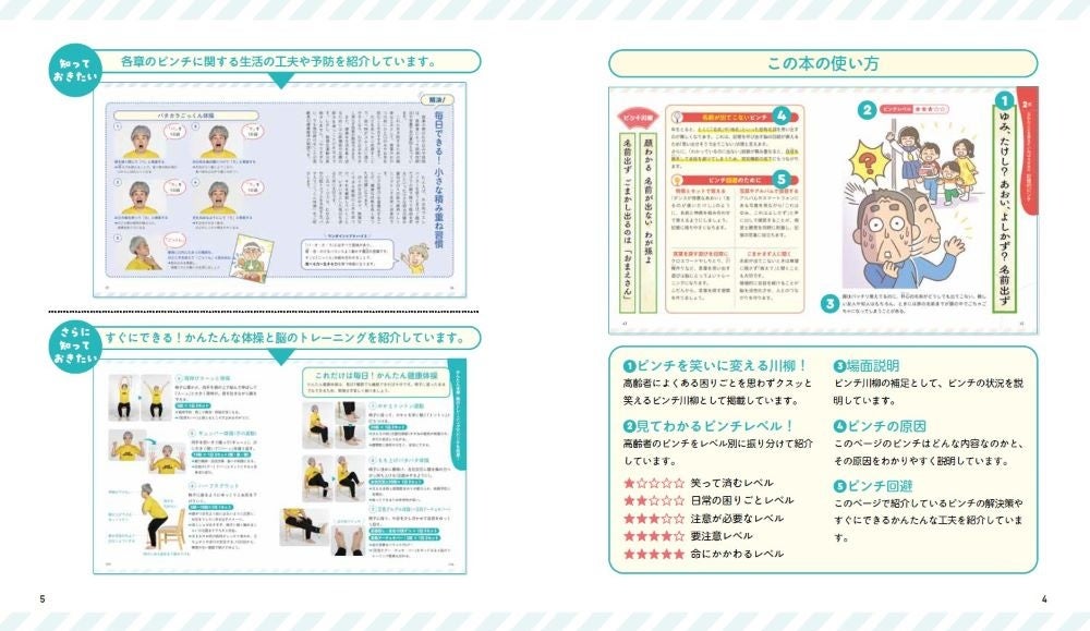 本書は、ネガティブになりがちな体の衰えやもの忘れなどの「老い」、日常生活や社会とのつながりなどの「くらし」に関連するピンチを明るく笑い飛ばすための解決策を紹介しています。