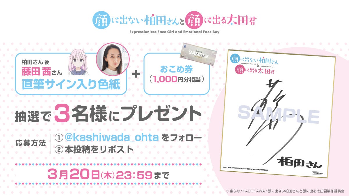 さらに、TVアニメ化を記念して、公式Xにて柏田さん役の藤田 茜さんのサイン入り色紙プレゼントキャンペーンを開始しました!