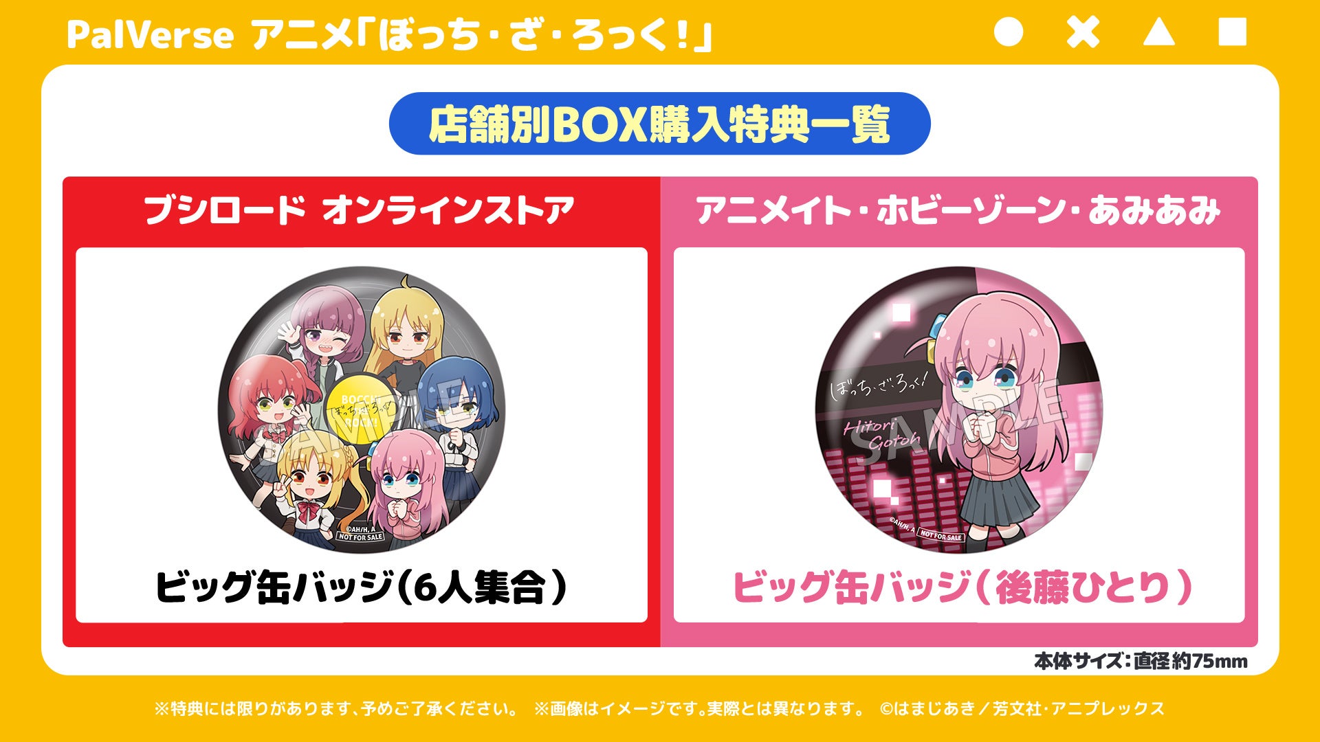 PalVerse アニメ「ぼっち・ざ・ろっく!」をブシロード オンラインストアまたはアニメイト、あみあみ、ホビーゾーンにてBOXでご購入いただきますと、1BOXごとに購入特典が付きます!