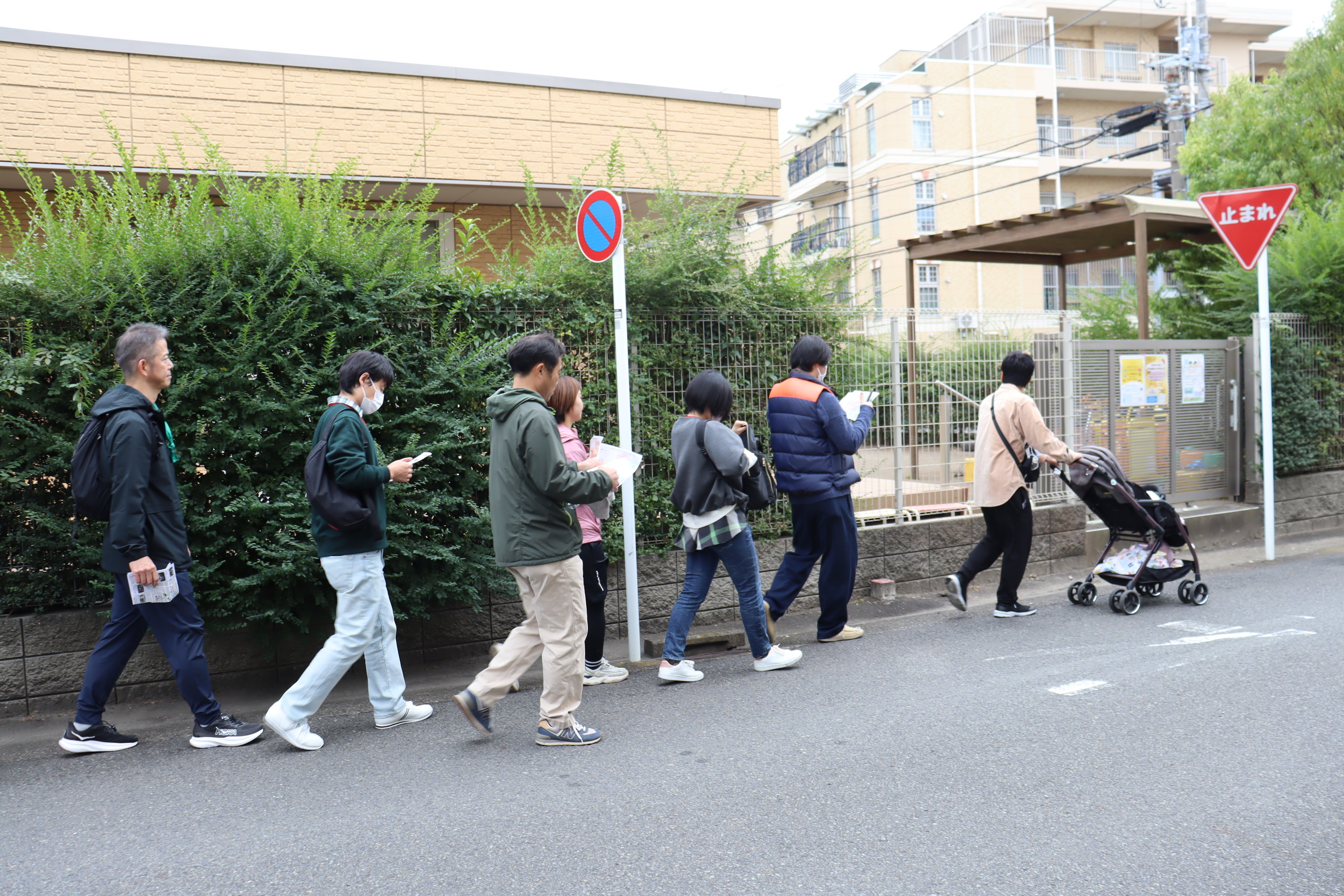 今回はウォーキングを楽しむだけでなく、学研グループの医療・福祉拠点や地域のおすすめスポットを巡る内容でした。途中で立ち寄った拠点では、ご入居者様もイベントを心待ちにされており、参加した職員と入居者様が交流する場面も見られました。