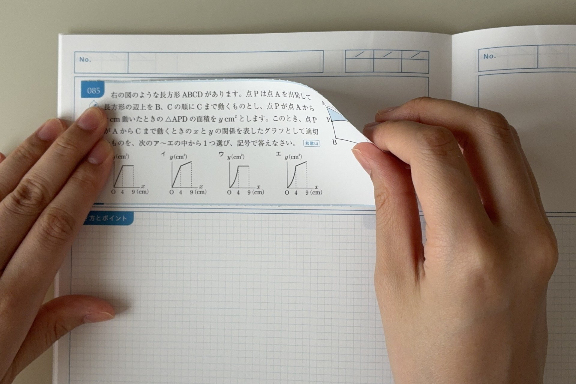 まちがえた問題だけを集めたノートをつくりたいけれど、問題をコピーして、切って、ノートに貼って…つくるまでが大変! そんな“あるある”を解決する高校入試対策の問題集です。あなたの使い方を見せてください!