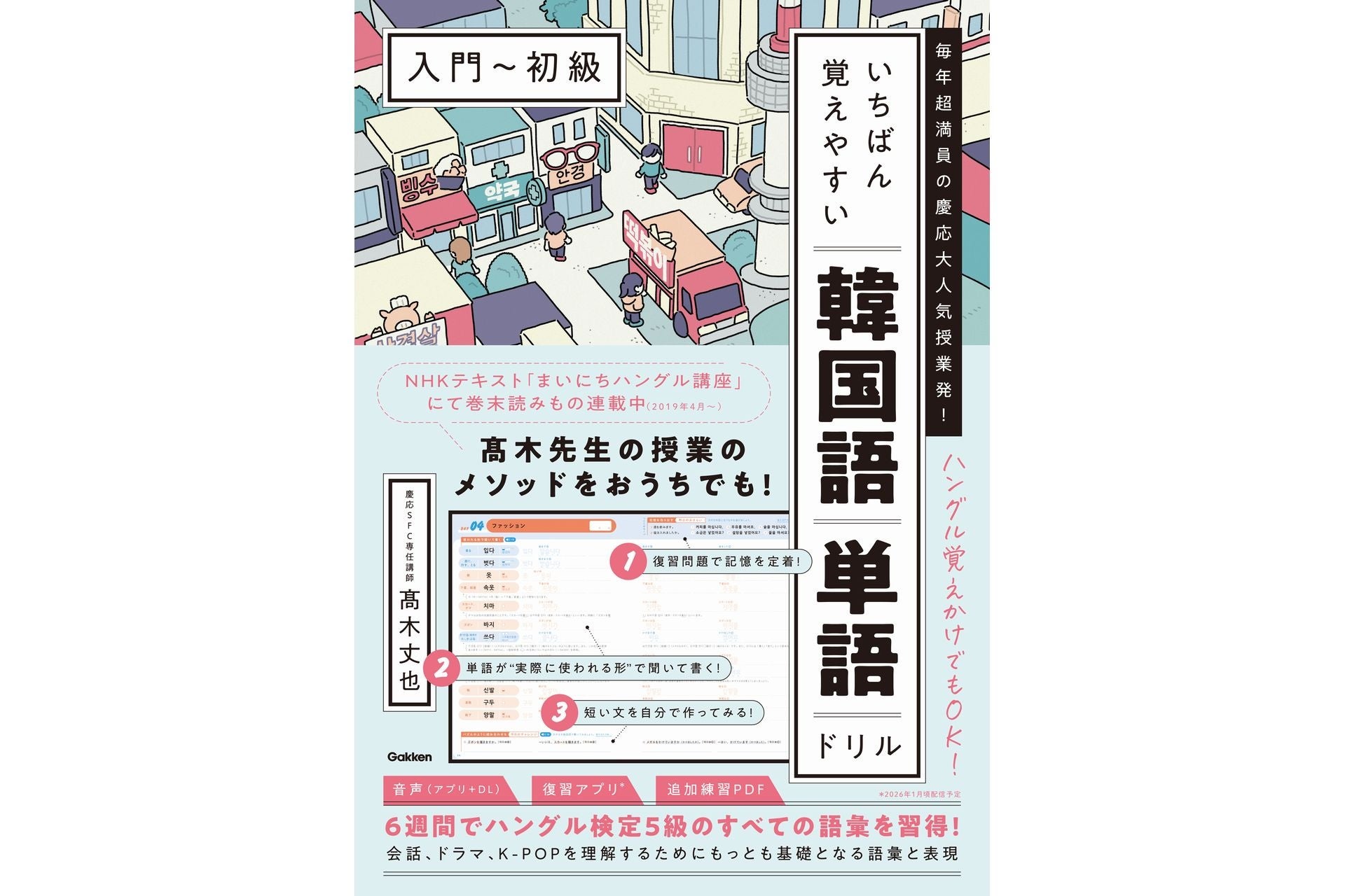 慶応大人気授業発! 6週間で韓国語初心者を卒業できる単語ドリルが登場。復習アプリ、追加練習PDF、音声で学習を万全サポート!