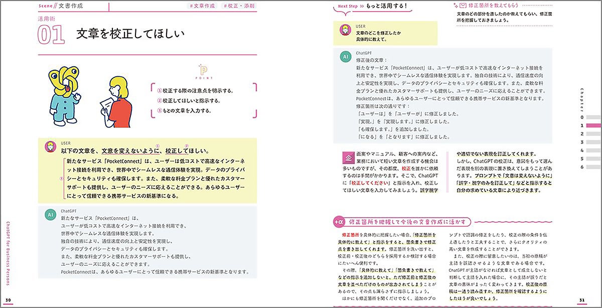本書では、初めてChatGPTを使う人でも、真似するだけで即活用できるオリジナルのプロンプトテンプレートを豊富にご紹介。初心者が押さえておくべき基本的なポイントはもちろんのこと、もう一歩踏み込んで活用するための方法や、思うような結果が得られなかったときのリテイク(修正)術まで、幅広く網羅しているので、『知識ゼロの分野でも「やってみたいこと」が、すぐに形にできた』『読み進めるだけで、アイデアが次々とわき出てくる』『作品のクオリティが驚くほど上がった』と大好評。収入アップを目指すフリーランスや副業クリエイターの方にも、ぜひ読んでいただきたい一冊です。