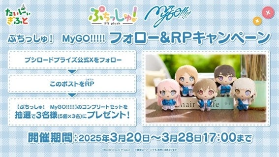 株式会社ブシロード(本社:東京都中野区、代表取締役社長:木谷高明)のグループ会社にあたる株式会社ブシロードクリエイティブ(本社:東京都中野区、代表取締役社⻑:成⽥耕祐)は、ミニクレーン向けの新景品ブランド「たいにぃぎふと」より「ぷちっしゅMyGO!!!!!」を2025年3月から順次展開いたします。