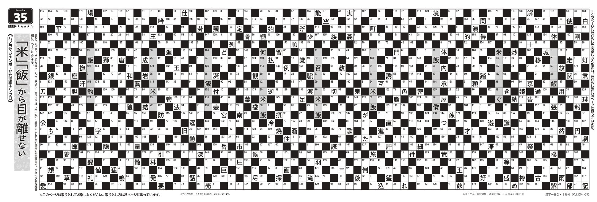 そして『漢字一番』の極めつきは少ヒントの難問漢字ナンクロが7問連続する名物コーナー、「難問チャレンジ7賞」(特別懸賞つき)。最終問題は、最初からマス目に出ている漢字がひとつもない、ノーヒントナンクロです。
