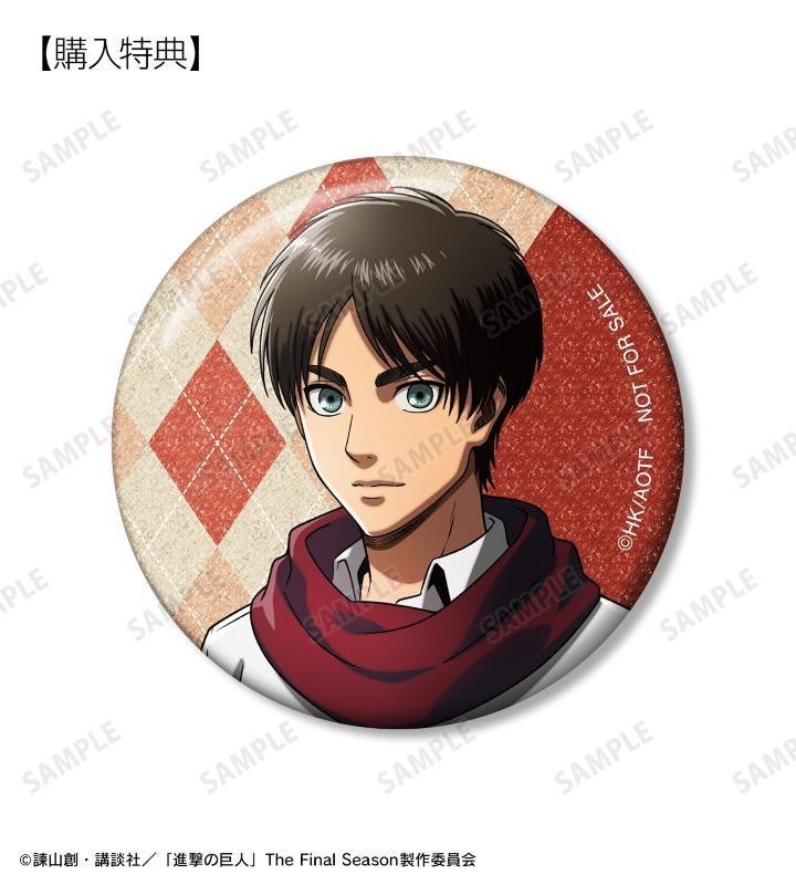 当商品を1BOX、または単品にて1BOX相当数ご注文ごとに、予約購入特典として「描き下ろし エレン マフラー着用ver. グリッター缶バッジ AMNIBUS&アニメイト限定特典」を付属いたします。