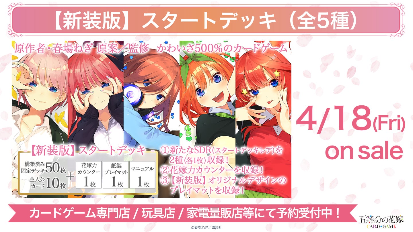 また、「五等分の花嫁 カードゲーム」2ndシーズンの第1弾商品は2025年10月頃に発売予定となっており、これまでに引き続き、原作者・春場ねぎ先生の描き下ろしイラストを収録予定となっております。今後の展開にご注目ください。