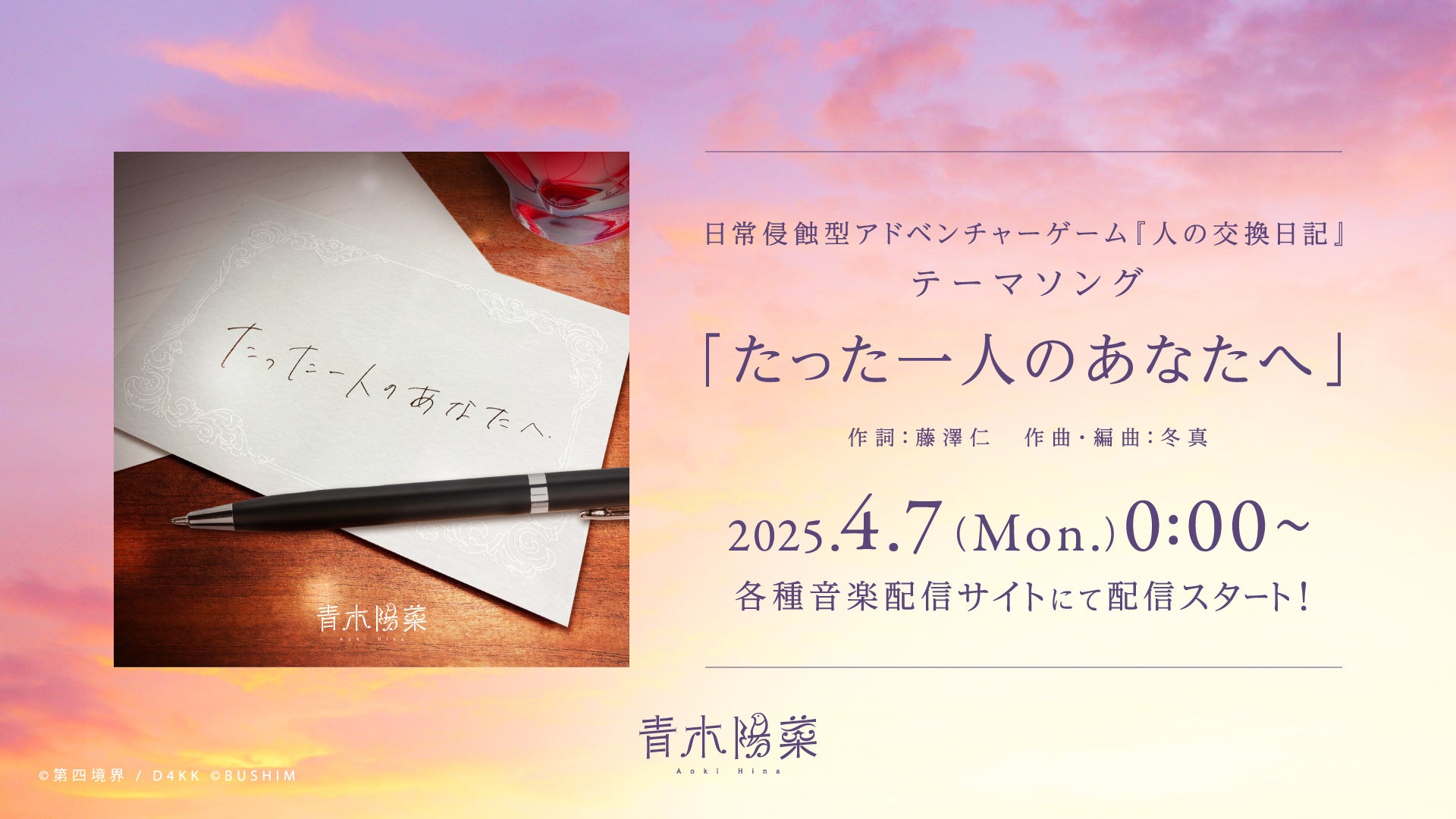 「たった一人のあなたへ」:https://bmu.lnk.to/HinaAoki_Tattahitorinoanatahe