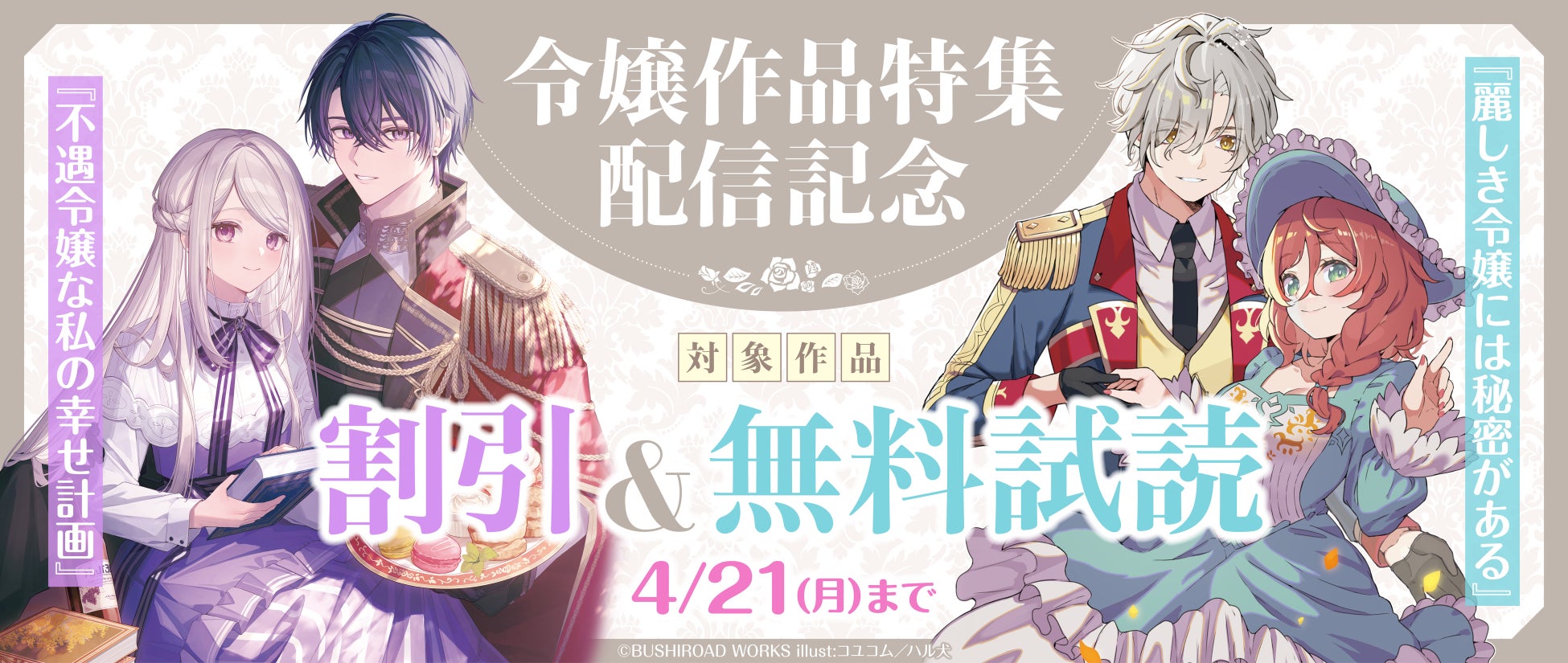 株式会社ブシロード(本社:東京都中野区、代表取締役社⻑:木谷高明)のグループ会社にあたる株式会社ブシロードワークス(本社:東京都中野区、代表取締役社長:新福恭平)は、「小説家になろう」より読切作品をコミカライズした令嬢たちのアンソロジー2冊が本日4月8日(火)より発売することをご案内致します。また、発売を記念した電子書籍フェアも実施中です。