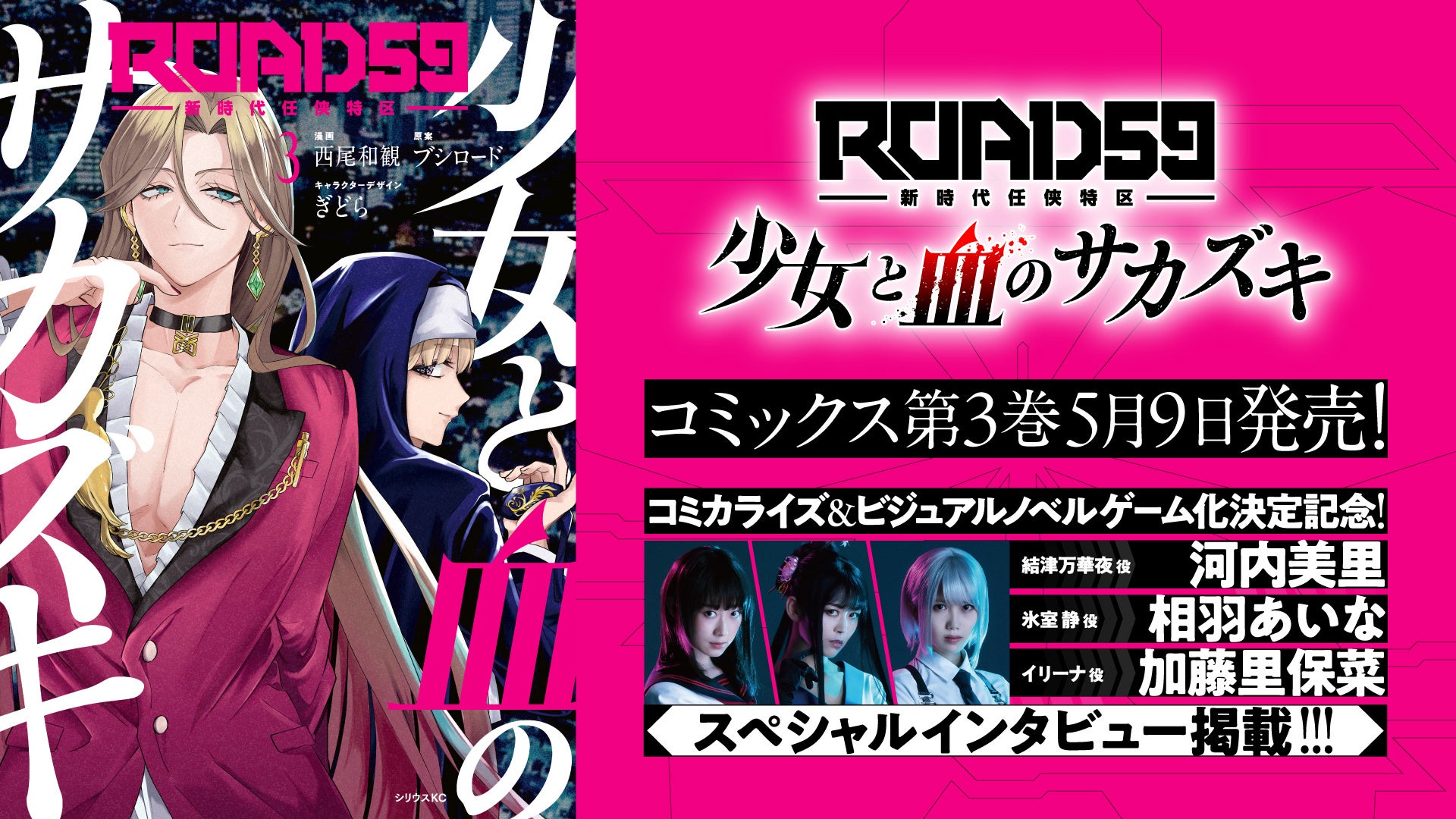 株式会社ブシロード(本社:東京都中野区、代表取締役社長:木谷高明)が原作のメディアミックスプロジェクト「ROAD59 -新時代任侠特区-」初のコミカライズ作品であり、週刊少年マガジン公式漫画アプリ「マガジンポケット(マガポケ)」にて連載されていた『ROAD59 -新時代任侠特区- 少女と血のサカズキ』単行本第3巻が2025年5月9日(金)に発売することが決定したことをお知らせいたします。
