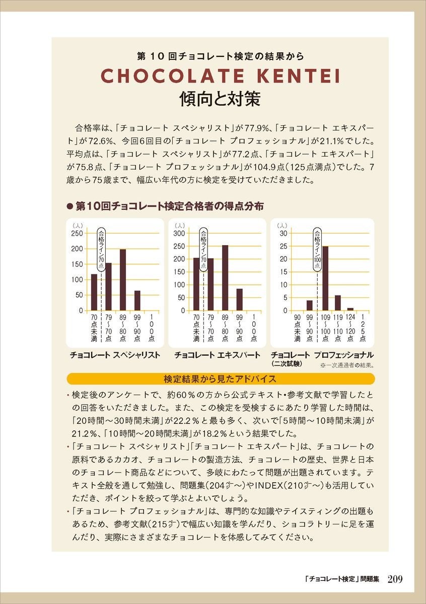 CBT(Computer Based Testing)方式により、全国47都道府県を網羅した約200か所のテストセンターで受検が可能です。とくに、初級レベルの「チョコレート スペシャリスト」、中級レベルの「チョコレート エキスパート」の試験問題は、本書からの出題が中心となるので、受検者にとっては必携の一冊といえます。